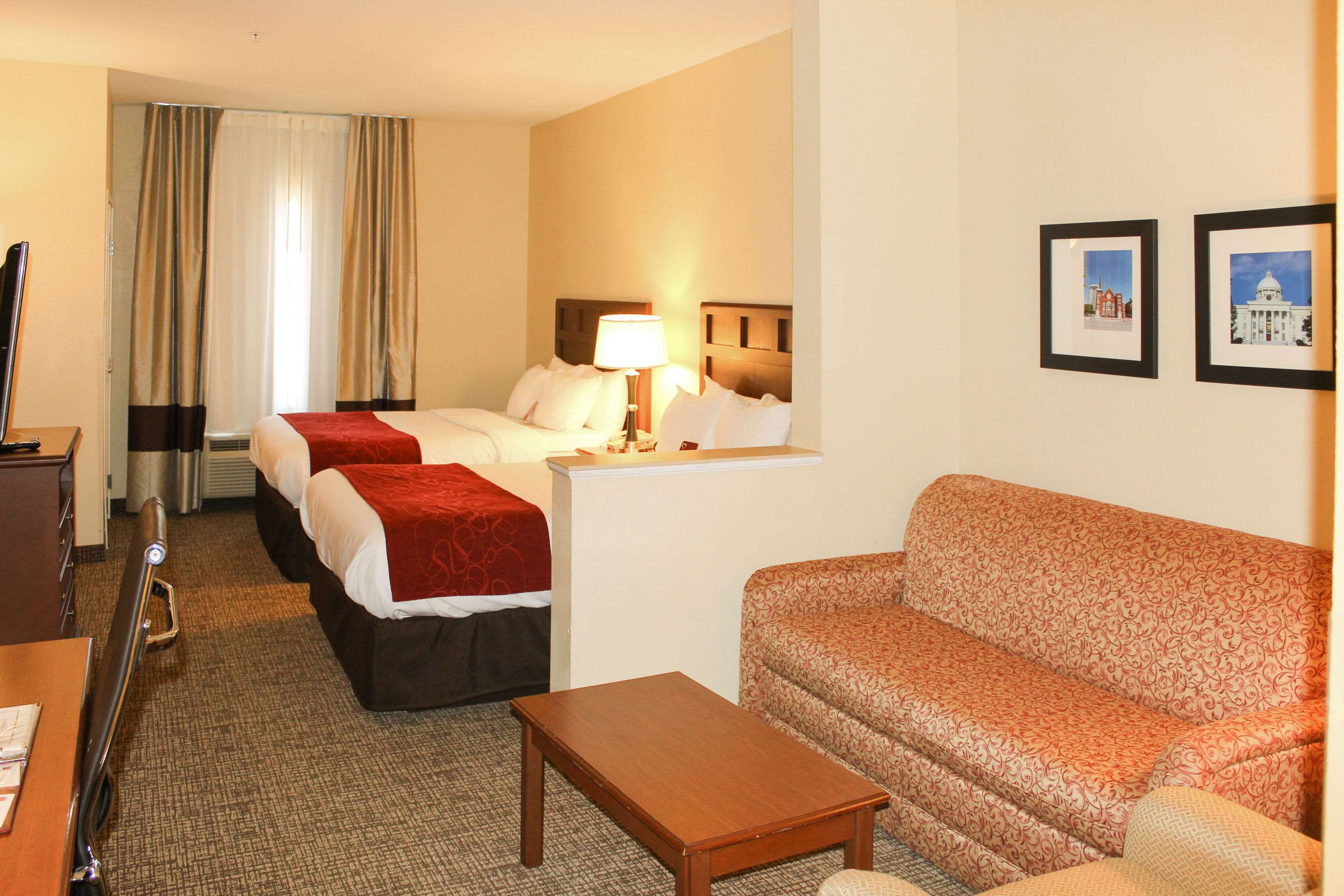 Contacts Gay Patel The well-being of guests is top of mind at Choice-branded hotels. Guests may experience a variety of new, improved cleanliness protocols and products. Get more of the space you need to spread out, relax or work at the smoke-free Comfort Suites Montgomery East Monticello Dr. hotel in Montgomery, AL near Faulkner University. Other nearby activities and sites include Alabama State University, Montgomery Zoo and the Rosa Parks Library and Museum. Enjoy free hot breakfast, free WiFi and guest laundry services. Your spacious suite offers 25 percent more space than the traditional room and amenities like a microwave, fridge, coffee maker, hair dryer, pillow-top mattress and recharge device. We also offer membership to the Choice Privileges Program, which gives members the opportunity to earn valuable rewards points toward airline miles, gift cards and free hotel room nights.