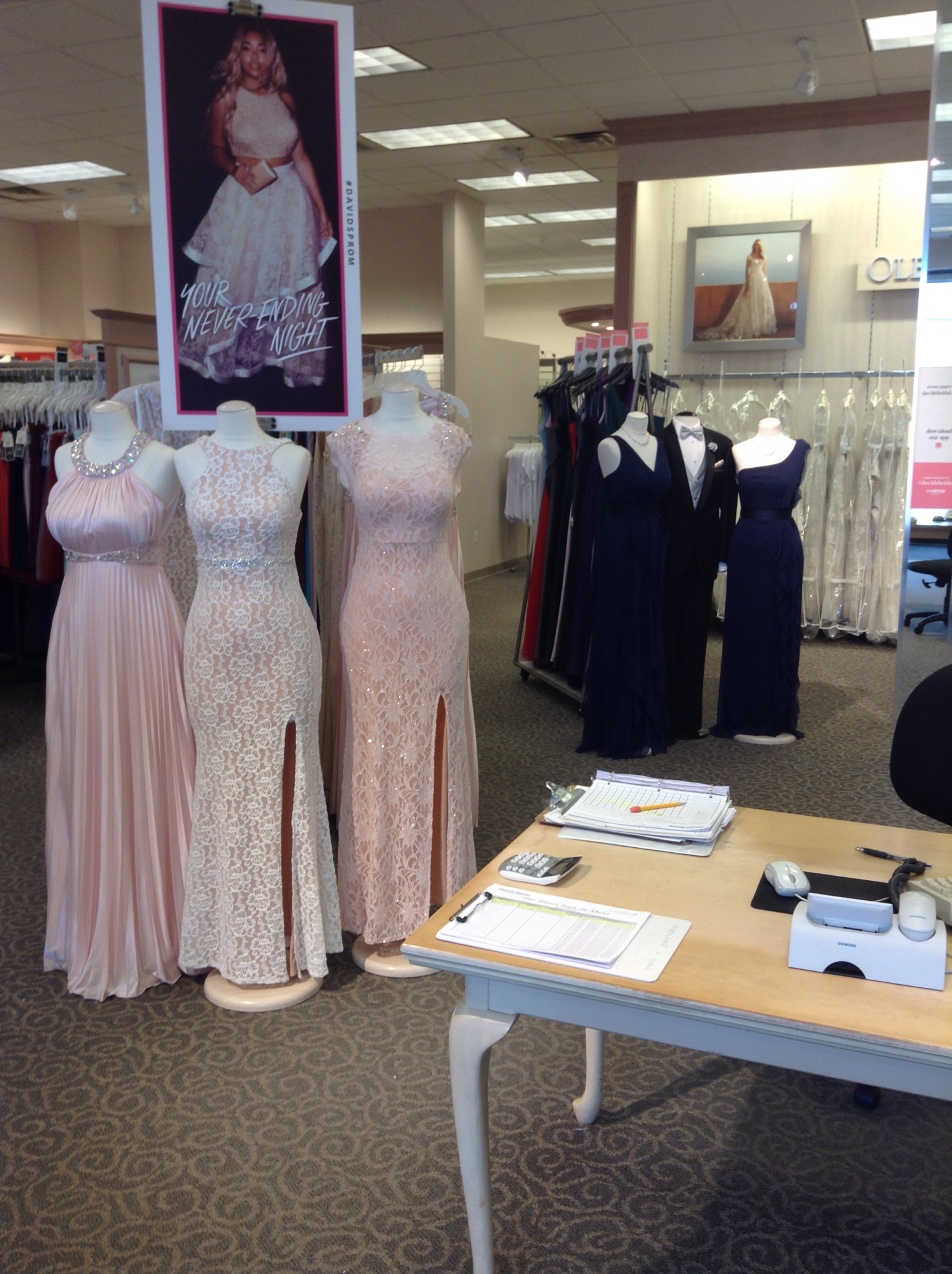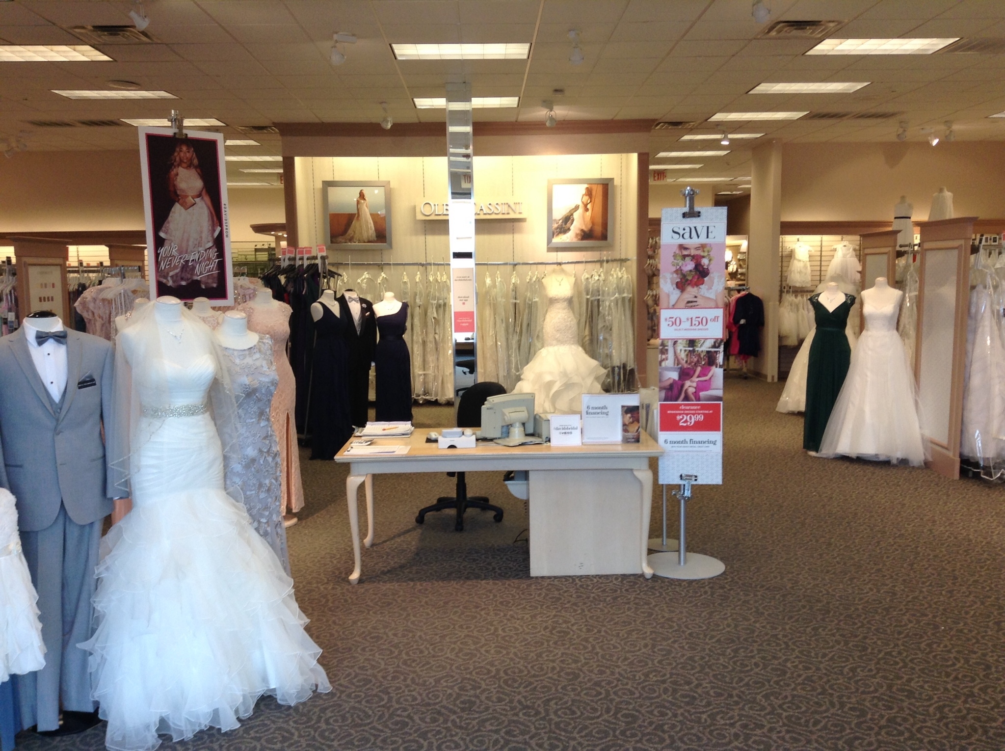 In addition to designer wedding dresses, David’s Bridal offers a full selection of prom and homecoming dresses, flower girl attire, communion styles and more!