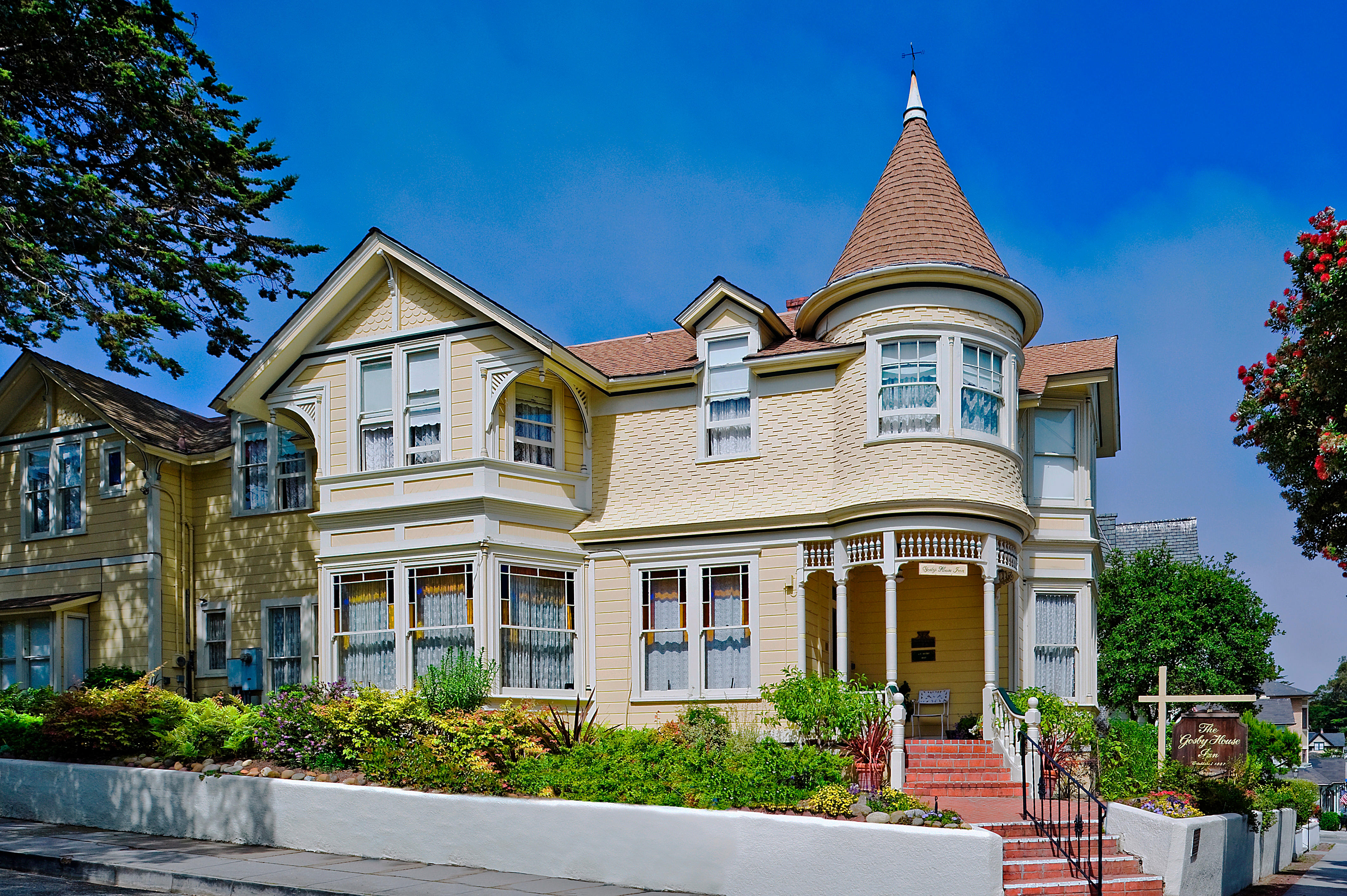 Contacts Kalena Mittelman Located on the Monterey Peninsula, the Gosby House Inn in Pacific Grove has been welcoming guests for over 100 years! This cheerful yellow and white Victorian mansion, with its carefully tended gardens and central patio, sets the standard for gracious innkeeping. Restaurants, shops and a scenic shoreline walking and biking path are just a few blocks from the Gosby House Inn, the choice for romance on the Monterey Peninsula. This Four Sisters Inn blends the modern luxuries and sophisticated services of a boutique hotel with the traditional amenities and architecture of a B & B