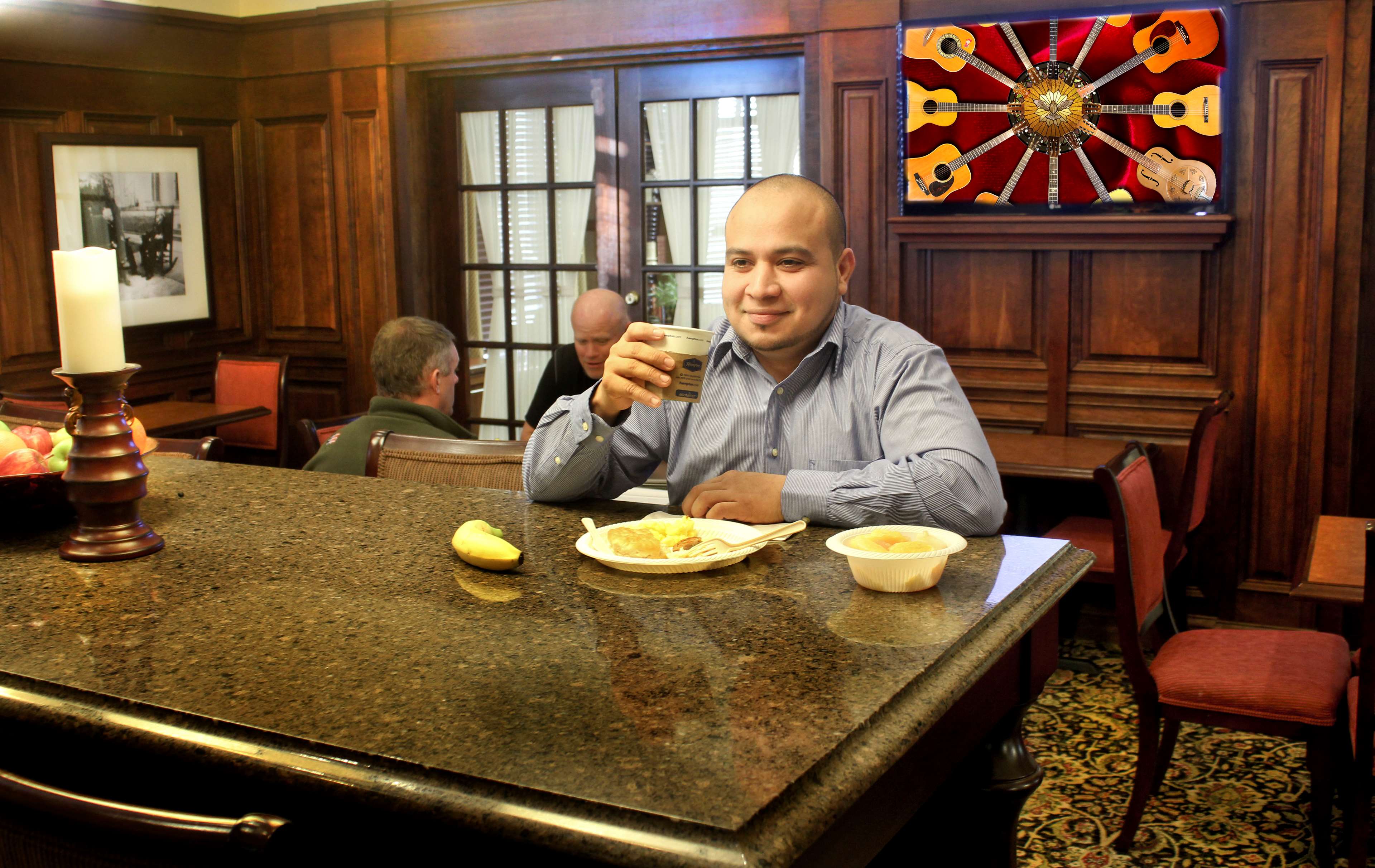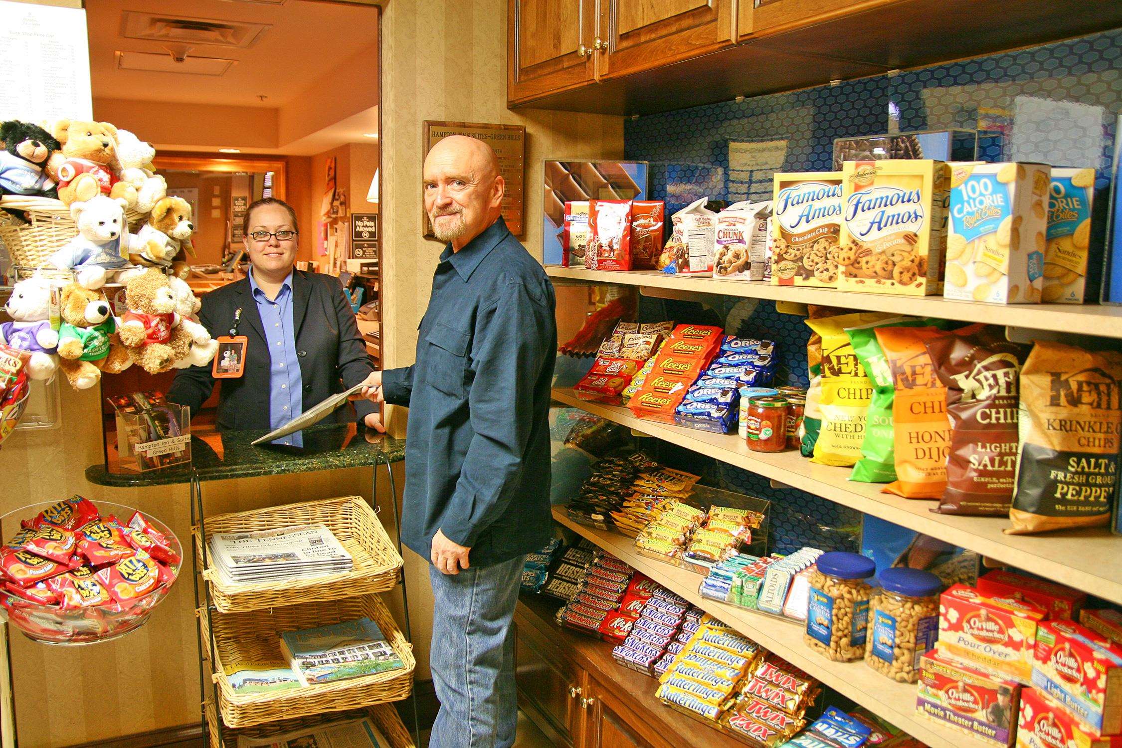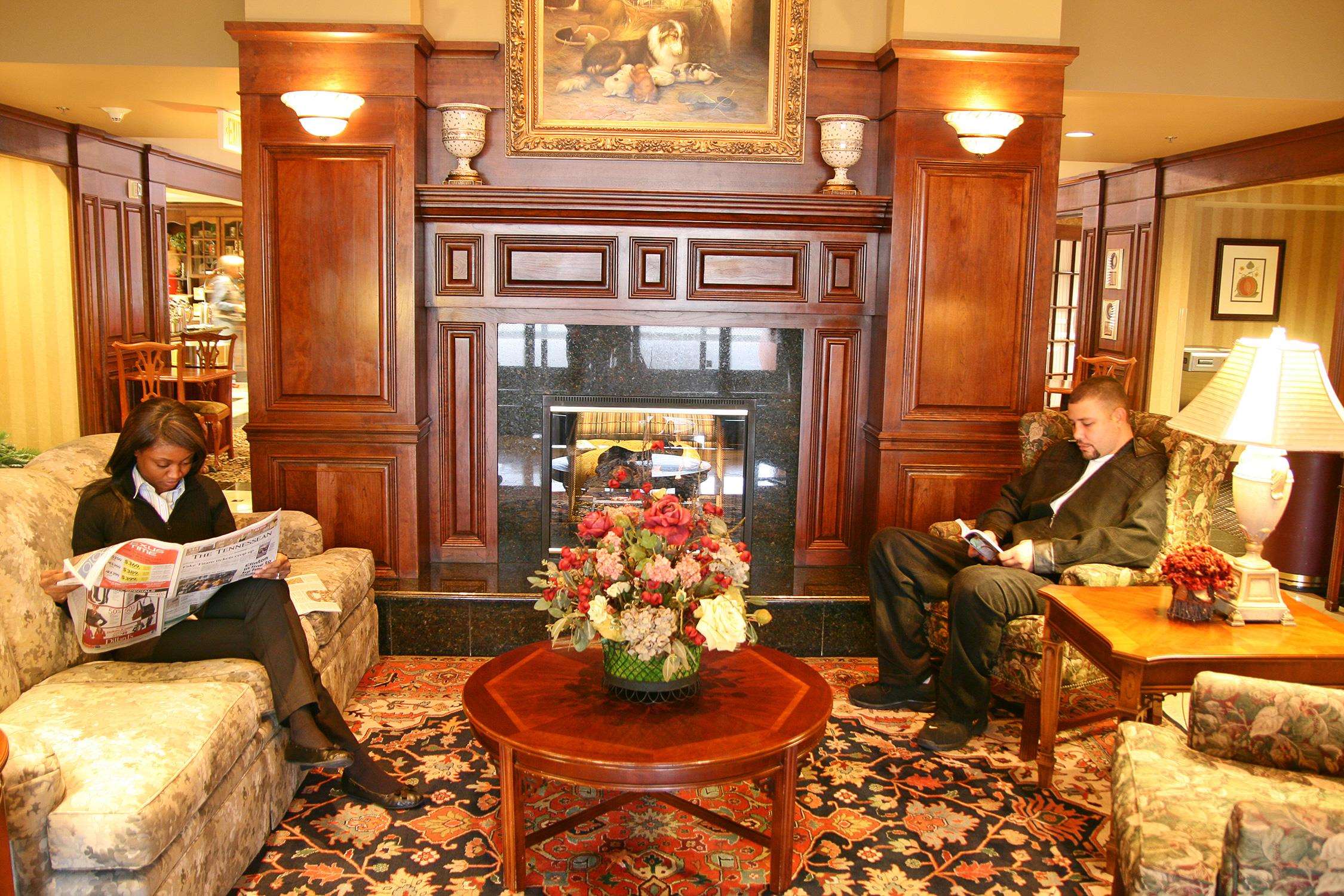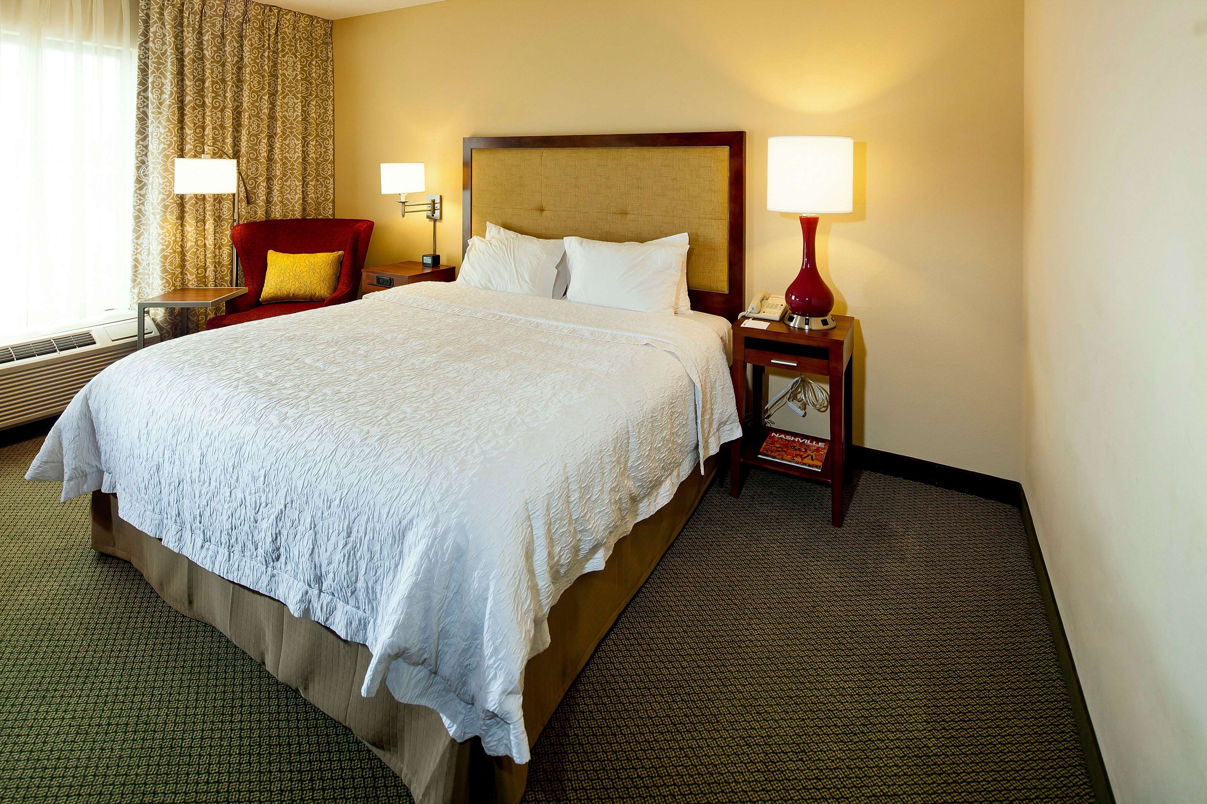 Contacts John T Rochford The Hampton Inn & Suites Nashville-Green Hills hotel in Tennessee features a red brick and limestone exterior reminiscent of Tennessee historic buildings of the past century. Our interior has traditional decor, richly decorated in cherry and mahogany woods and cultured marble showers and granite vanities. Hotel guests will find this decor in each spacious room and one-bedroom residential style suite.Our guests will enjoy free hot breakfast and WiFi, on-site guest laundry facilities, fitness center and seasonal outdoor pool.