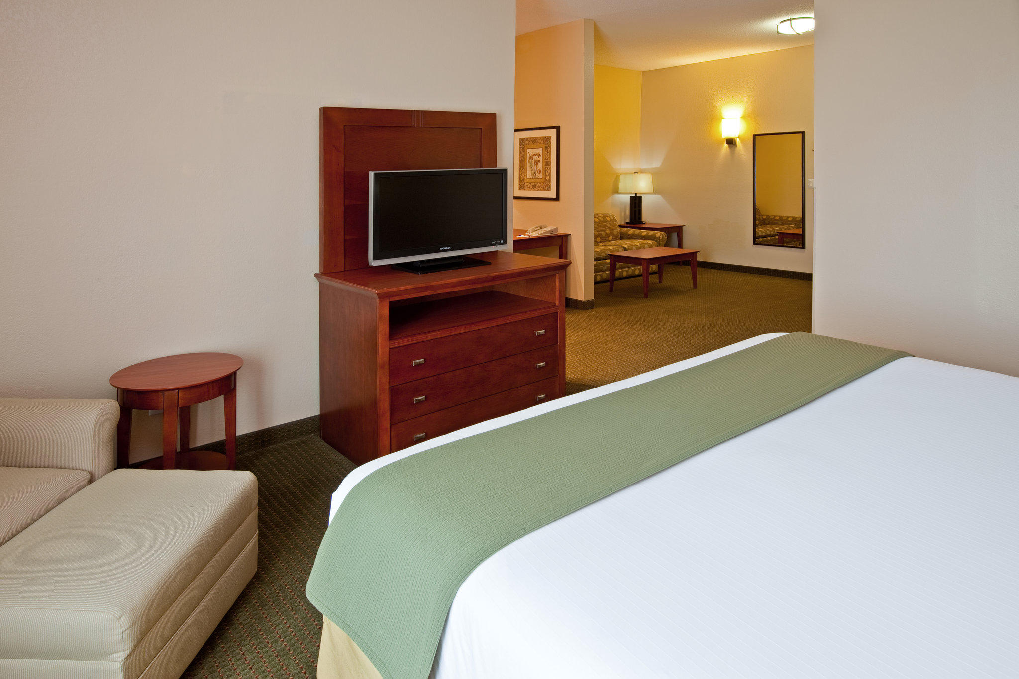 Contacts Cindy Parks Bedford, Indiana Hotel's Staff Welcomes You to The Holiday Inn Express® Hotel & Suites Bedford; the gateway to Southern Indiana. Our hotel's location is just 17 miles from Bloomington, IN, home of Indiana University and I.U's Memorial Stadium. Business guests of our hotel in Bedford, IN appreciate being just 77 miles southeast of Indianapolis International Airport (IND) and the Indy Speedway. They stay productive with a 24-hour Business Center that offers printing. There's free high-speed, wired and wireless Internet access with 24/7 tech support to keep you connected to clients, the office and family. We also offer one meeting room. From embarking on a guided tour of the dark and mysterious Bluespring Caverns to making the trek to Memorial Stadium to cheer the Hoosiers, there's plenty to do in southern Indiana. Our hotel's guests can amble down Main Street in downtown Bedford and browse through unique shops, play golf at Otis Park or see a show at the community theater. Guests love our deluxe rooms and spacious suites. Perks include rooms with balconies, overlooking indoor pool, XL suites, HDTVs. An indoor pool, spa, an atrium recreation area and a Fitness Center help you to relax. Start the day with our free, new hot breakfast. Free lighted parking helps you feel secure. We'll greet you with fresh-baked cookies when you check in on a weekday. Earn IHG Rewards points with your next stay at our hotel in Bedford, IN. Some Amenities are restricted due to Covid-19