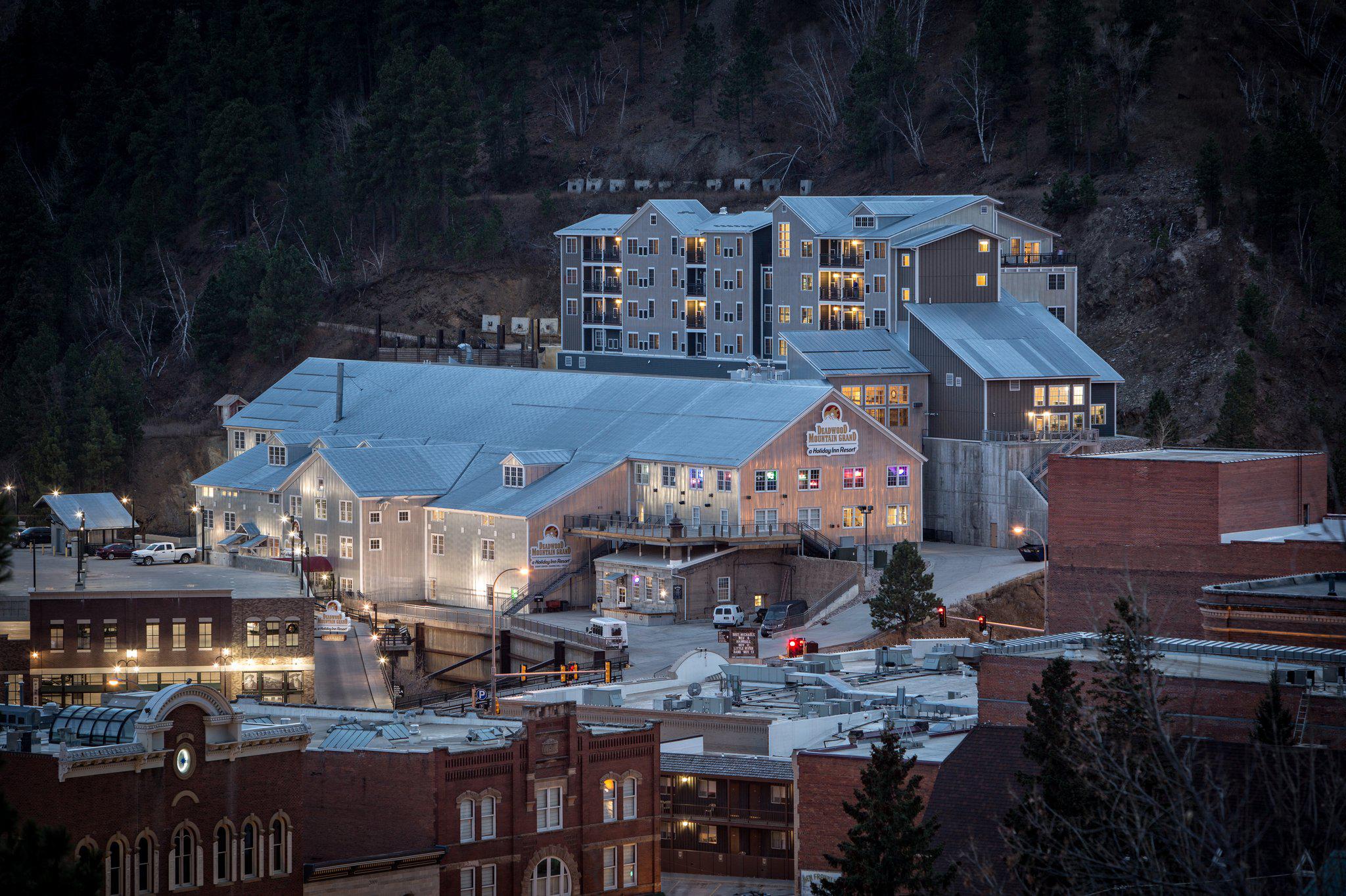 Contacts --History meets luxury at Deadwood Mountain Grand, a Holiday Inn Resort! Our 98 room resort features the finest rooms and suites in the heart of historic downtown Deadwood, including many with fireplaces and balconies that overlook historic Deadwood!