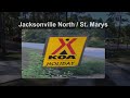 Contacts Jim True 10 years and counting as President's and Founder's Award winner. Come enjoy our beautiful park right off of I-95. Enjoy the shade under the magnificent Georgia pines at our KOA. We are located at I-95 - Exit 1, providing easy access only 1/2 mile from the exit ramp and 1 mile from the Florida border, 20 miles north of Jacksonville, Fla.This friendly campground is known for its complimentary waffle and pancake breakfast served every day! We have just added Biscuits and Sausage gravy to our complimentary breakfast.All sites are pull thru and we now have free high speed wi-fi for all to enjoy. We have had to eliminate cable in the park, but raising your antenna should get you 35 HD channels. Enjoy the large heated swimming pool with a waterfall and water slide, fully equipped fitness center with sauna, game room with pool table, our new 18-hole Putt-Putt Course, two on-site laundry rooms, pet park, playground, Jump Pad, and a full-kitchen enclosed Clubhouse. The Deluxe Cabins and The Lodge offer all the comforts of home while enjoying a camping experience. Our Camping Cabins offer an alternative to tent camping. Make a reservation to sleep in our popular Tipis! Check out the photos.We have a new community fire ring and have scheduled many story telling, marshmallow roasting events.We have expanded our dinner menu and now offer burgers as well.We are located only 10 minutes from the Cumberland Island Ferry, located in historic St. Marys, Georgia. Be sure to book your reservation to see the Cumberland Island National Seashore for a wild, untouched beach adventure. Visit historic Fort Clinch on Amelia Island, Florida - located just 30 minutes south of our park. The Okefenokee Swamp alligator adventures are just 45 minutes away. Golf at Laurel Island Links offers a great golfing experience and is a short 10 minute drive. Vast shopping and dining options in Jacksonville, Florida are only a 20-minute drive. We are happy to assist you with arrangements for kayaking and boat tours on the St. Marys River.