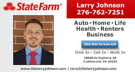 Contacts --Located in Castlewood, VA, Larry Johnson - State Farm Insurance Agent offers all types of insurance such as Auto Insurance, Home Insurance, Life Insurance, Health, Renters and Business Insurance. Our mission is to help people manage the risks of everyday life, recover from the unexpected and realize their dreams. State Farm products include auto insurance, home owner insurance, Commercial insurance, small business insurance, life insurance, health insurance, long-term care, annuities, recreational vehicle insurance, trailers, farm & ranch insurance, and much more!