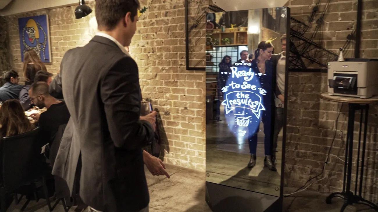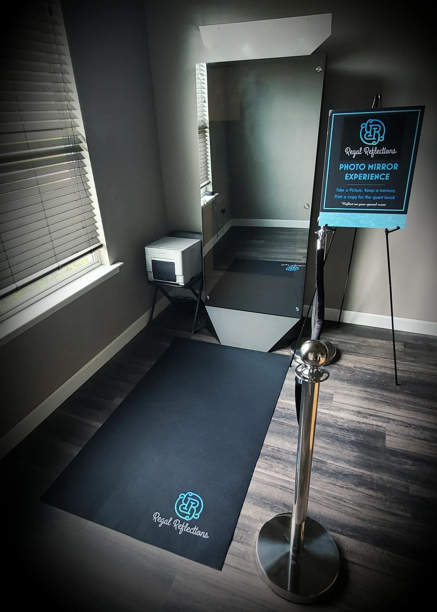 Contacts --Regal Reflections Mirror Photo Booth is a stunning 6 foot tall ultimate "selfie" experience! With an interactive screen and voice guidance, your guests will be entertained and leave with a fun keepsake from your special event. Our Mirror Photo Booth features include digital prop choices, signatures, text/email options, personalized backgrounds/overlays/touch screen, interactive games, and much more! For more information give us a call. Available Fri, Sat & Sun by Appointment Only.