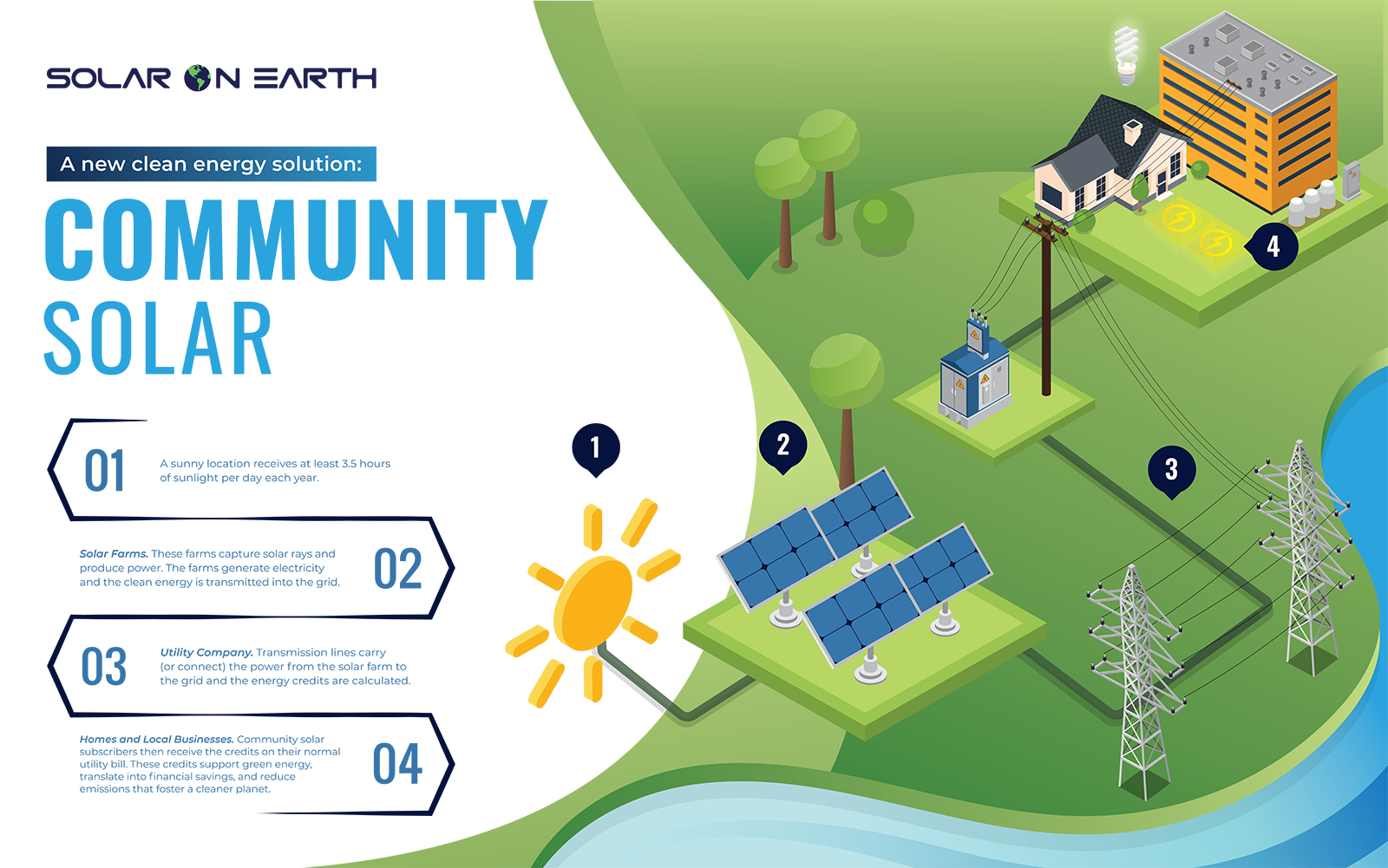 Contacts --For most people, the traditional approach to solar power involves buying a system of solar panels or leasing your rooftop to an outside company. Both options require a significant upfront investment and may come with lease options that can span 20 years. While home-based systems might be a good solution for some individuals and businesses, there is a third option available: Community Solar. Whether you own or rent, you may be eligible to leverage the financial savings and environmental benefits of Community Solar without investing anything or without installing equipment on your property.