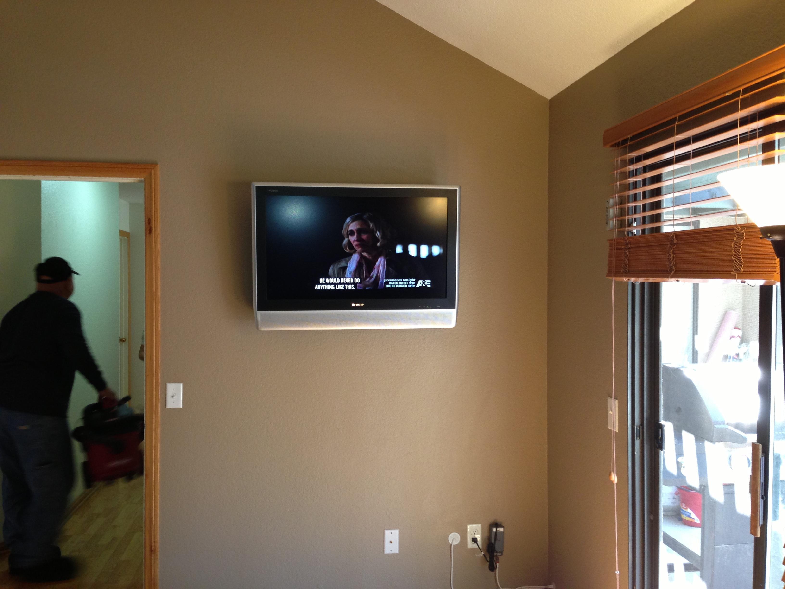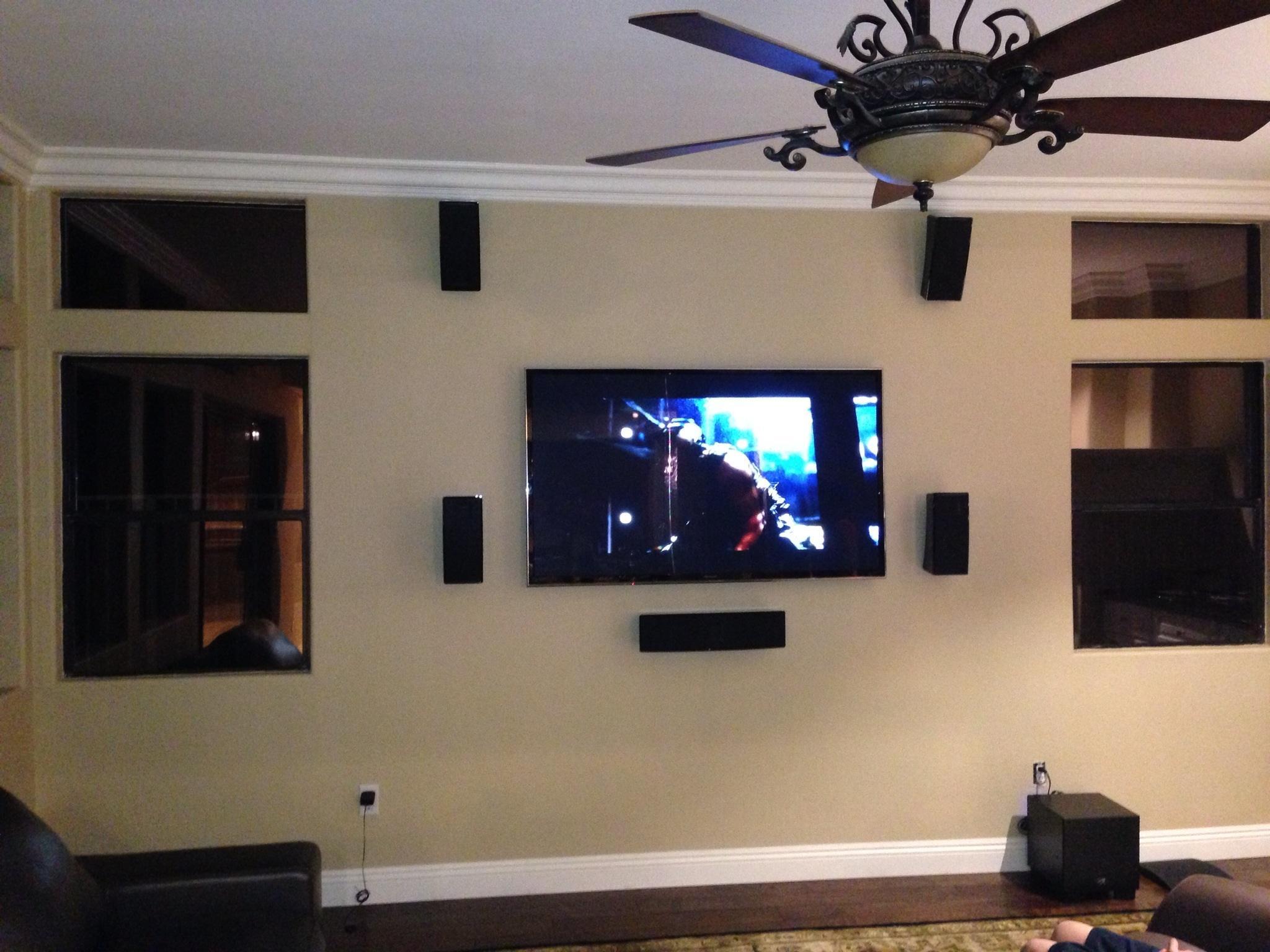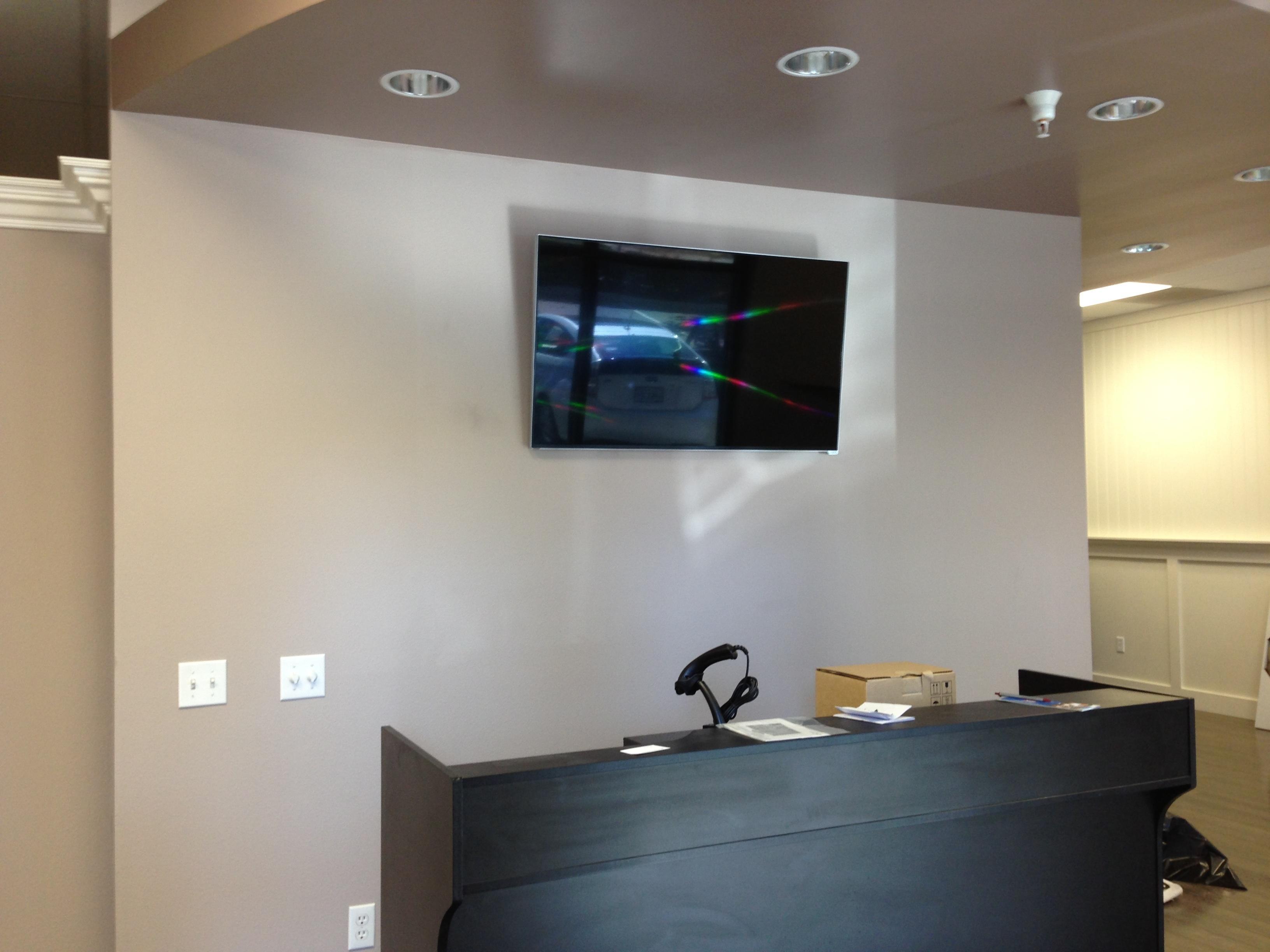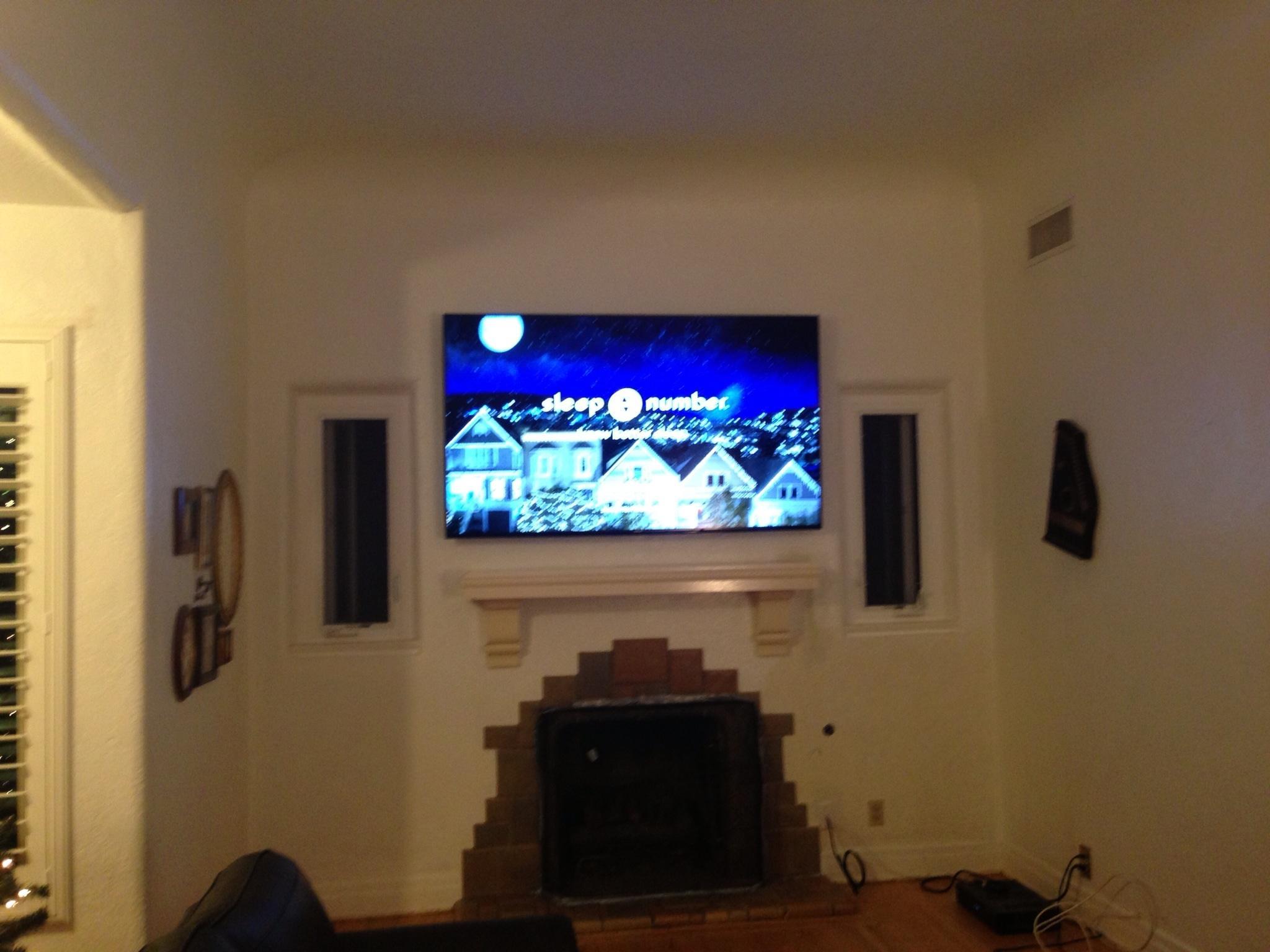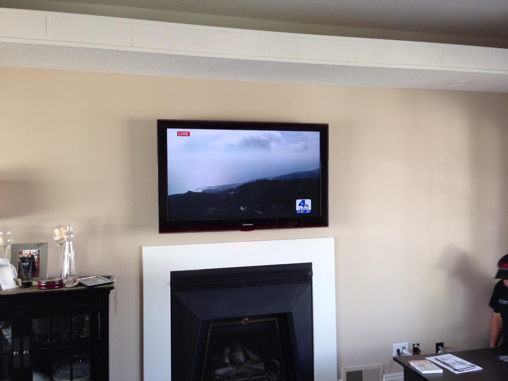 • 75 65 80 37 Home theater room in loft.  mount BenQ HD projector, 120 Home theater projector calibration. 120 120 Commercial Salon tv installation. Organization is our way to stay on top of production. Commercial cafeteria 4@46 We wall mounted both 70 Martin Logan wall mounted array. Commercial outdoor IP CCTV. Dave installing center in-ceiling speaker 5.1 system. Sometimes ceiling mounts can be used to provide a modern look, cabling gets concealed in pipe mount. 46 Dave up high running CCTV cabling for (8) camera system outdoor produce company. Big bear cabin speaker system 3@ pairs of speakers in three rooms with 5.1 in main living area, wall mounted 55 This client already had electrician run power to location on surface of wall, we came in and mounted tv, concealed our cabling. Commercial projector conference room. Ceiling mounted HDMI, VGA, audio. 80 Built in wall unit installed 75 Twin 55 60 65 60 Full Russsound audio system outdoor 6 zone 65 Grado spa 40 Client has existing small niche we framed out area mounted full motion mount. This shot is behind install, when tv is pushed back hides hole. 65 Big bear cabin in-wall speakers 70 We sell and install Samsung commercial displays. This was for a local trucking company dispatch displays. 60 55 55 60 60 Dual outdoor patio displays. Installing 7.1 in-ceiling speakers. Full motion mount for this 75 55 60 Commercial CCTV POE system. 35k warehouse cable runs. Whole house speaker system , these were in the tarazzo shower. This small cubby was transformed with framing to support 55 Tv over framed out area client wanted under area for there devices. Client had contractor tell her that this plaster brick fireplace was not possible to install and conceal cabling. 65 Residential 16 channel CCTV set up programming DVR. 60 42 Small Samsung game room tv, client installed tv. We were needed to come in and conceal cabling running down wall. 03/11/15 Again client pre mounted this tv we were called in to conceal cabling running between tv and dresser. 03/11/15 Tv in alcove area 03/13/15 One of three tv installed  with 5.1 in ceiling speakers post wire 03/14/15 Wall mounted floating A/V furniture sold and installed. Available in Expresso and Chocolate.