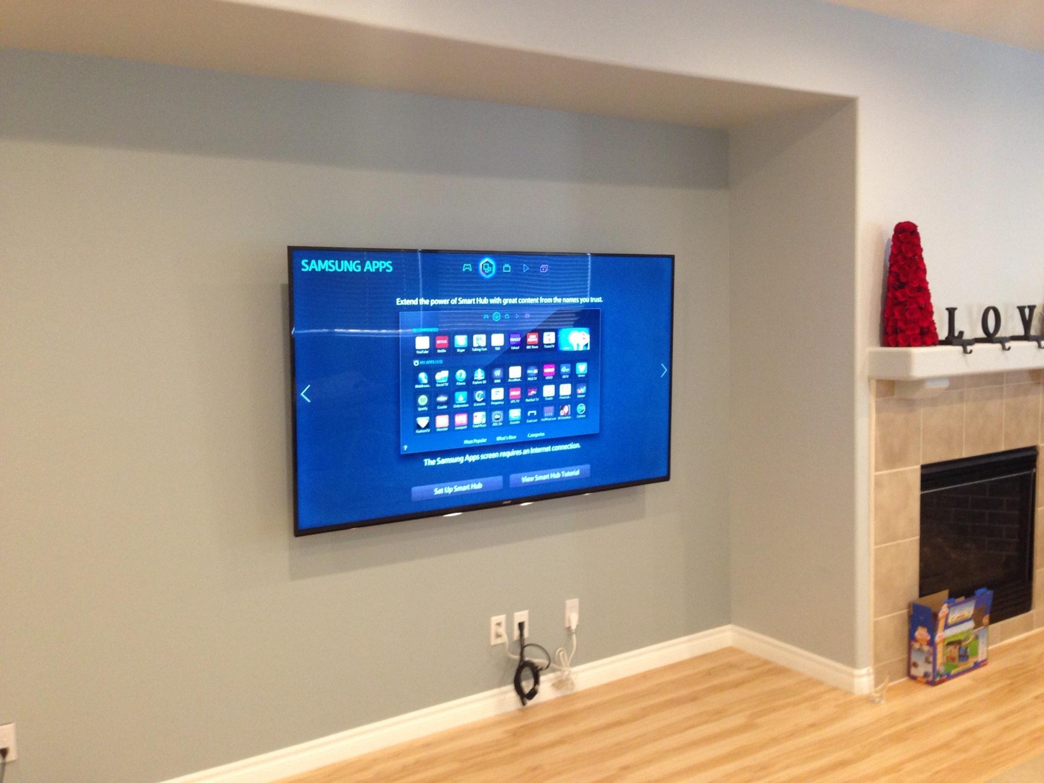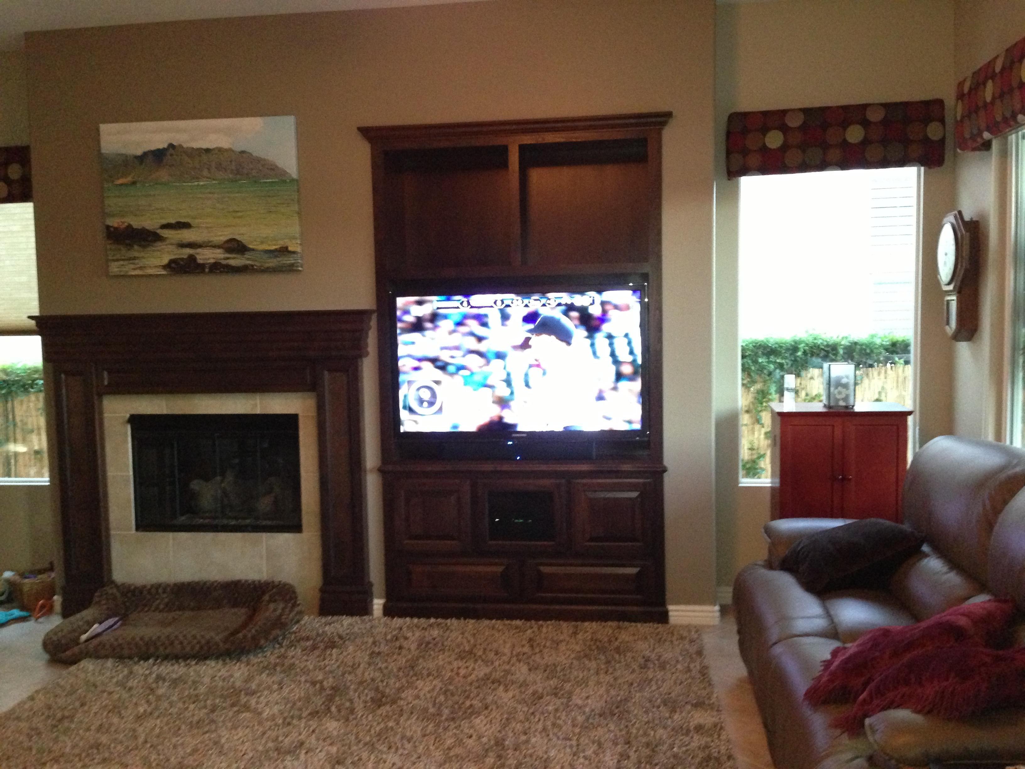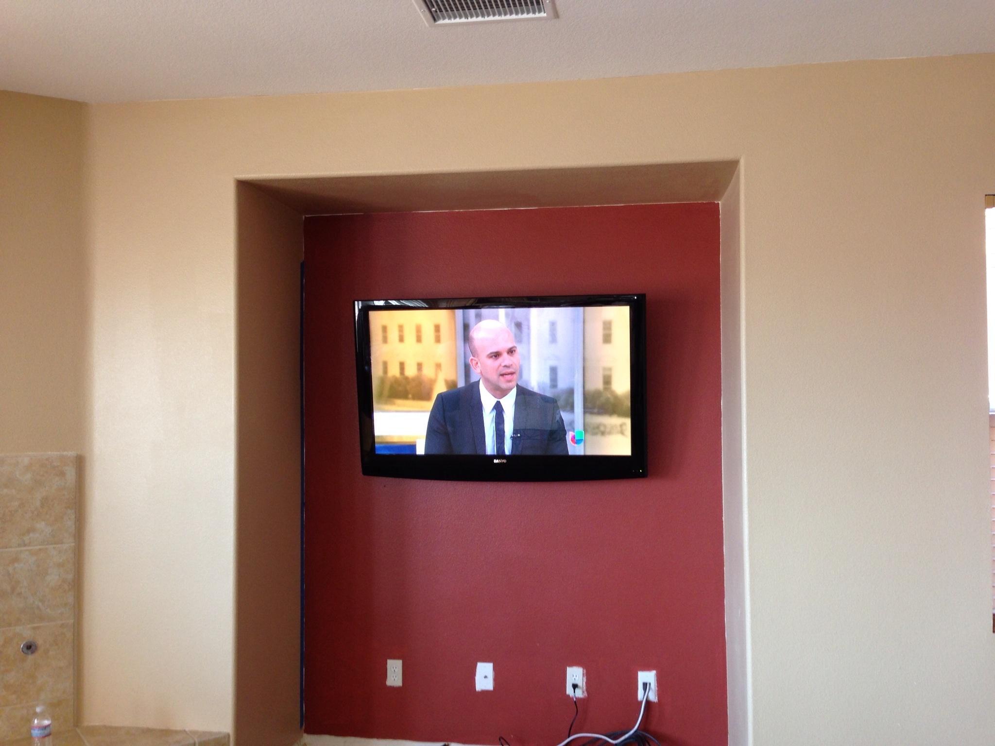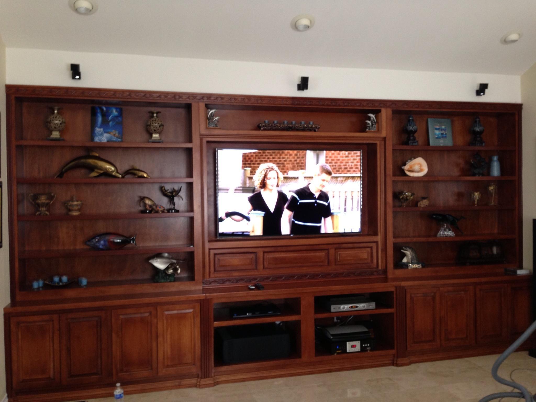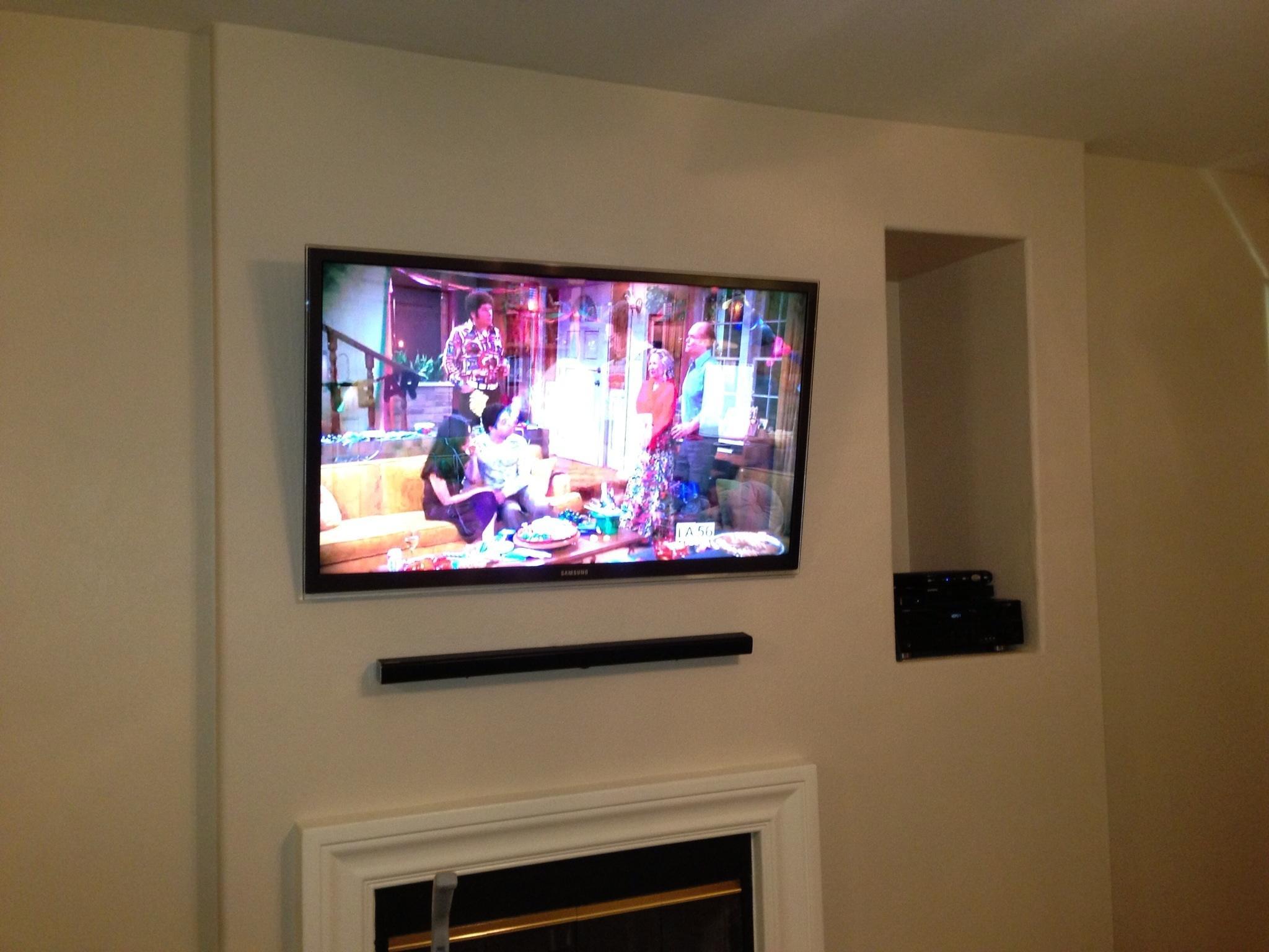• 75 65 80 37 Home theater room in loft.  mount BenQ HD projector, 120 Home theater projector calibration. 120 120 Commercial Salon tv installation. Organization is our way to stay on top of production. Commercial cafeteria 4@46 We wall mounted both 70 Martin Logan wall mounted array. Commercial outdoor IP CCTV. Dave installing center in-ceiling speaker 5.1 system. Sometimes ceiling mounts can be used to provide a modern look, cabling gets concealed in pipe mount. 46 Dave up high running CCTV cabling for (8) camera system outdoor produce company. Big bear cabin speaker system 3@ pairs of speakers in three rooms with 5.1 in main living area, wall mounted 55 This client already had electrician run power to location on surface of wall, we came in and mounted tv, concealed our cabling. Commercial projector conference room. Ceiling mounted HDMI, VGA, audio. 80 Built in wall unit installed 75 Twin 55 60 65 60 Full Russsound audio system outdoor 6 zone 65 Grado spa 40 Client has existing small niche we framed out area mounted full motion mount. This shot is behind install, when tv is pushed back hides hole. 65 Big bear cabin in-wall speakers 70 We sell and install Samsung commercial displays. This was for a local trucking company dispatch displays. 60 55 55 60 60 Dual outdoor patio displays. Installing 7.1 in-ceiling speakers. Full motion mount for this 75 55 60 Commercial CCTV POE system. 35k warehouse cable runs. Whole house speaker system , these were in the tarazzo shower. This small cubby was transformed with framing to support 55 Tv over framed out area client wanted under area for there devices. Client had contractor tell her that this plaster brick fireplace was not possible to install and conceal cabling. 65 Residential 16 channel CCTV set up programming DVR. 60 42 Small Samsung game room tv, client installed tv. We were needed to come in and conceal cabling running down wall. 03/11/15 Again client pre mounted this tv we were called in to conceal cabling running between tv and dresser. 03/11/15 Tv in alcove area 03/13/15 One of three tv installed  with 5.1 in ceiling speakers post wire 03/14/15 Wall mounted floating A/V furniture sold and installed. Available in Expresso and Chocolate.