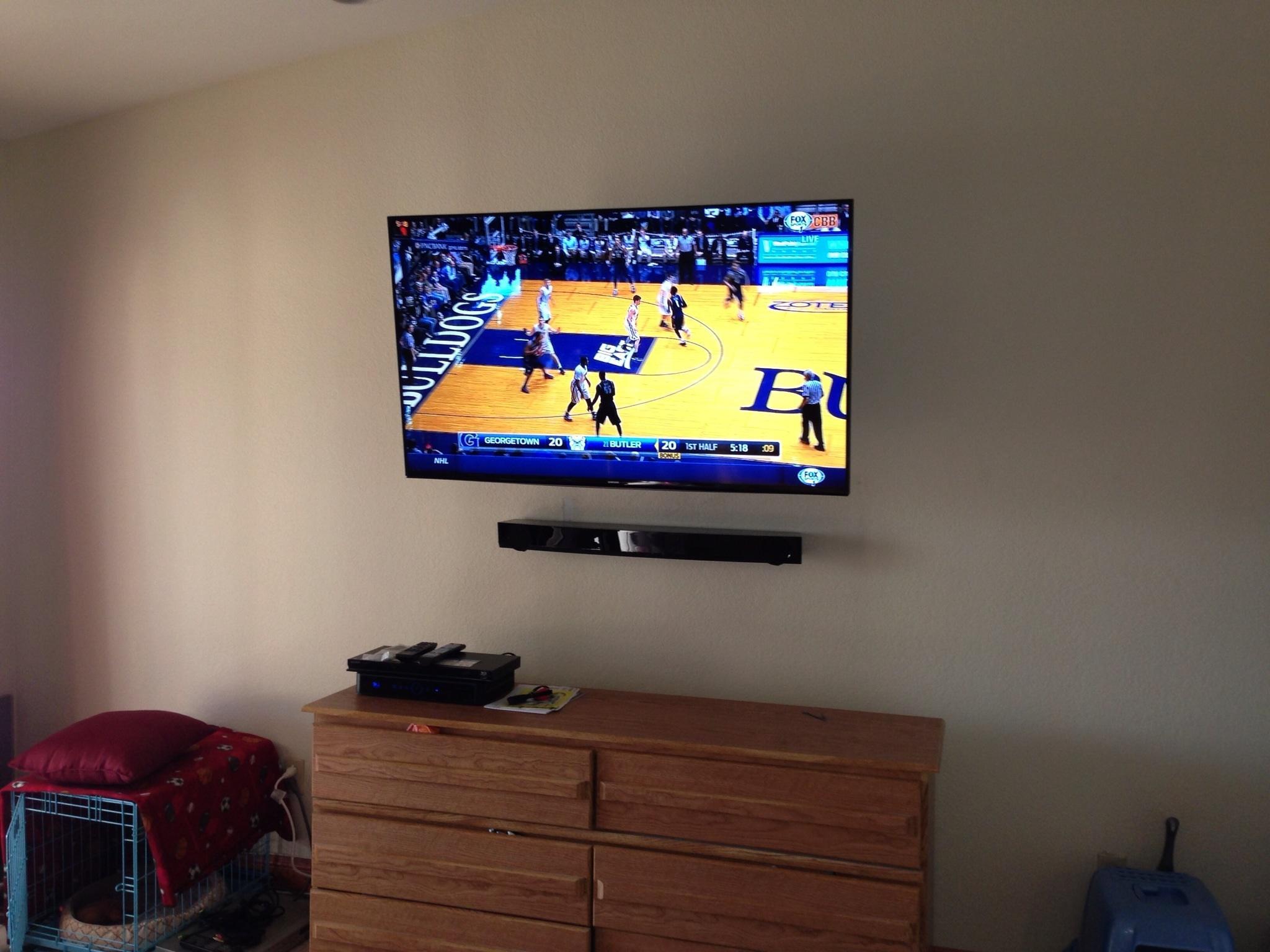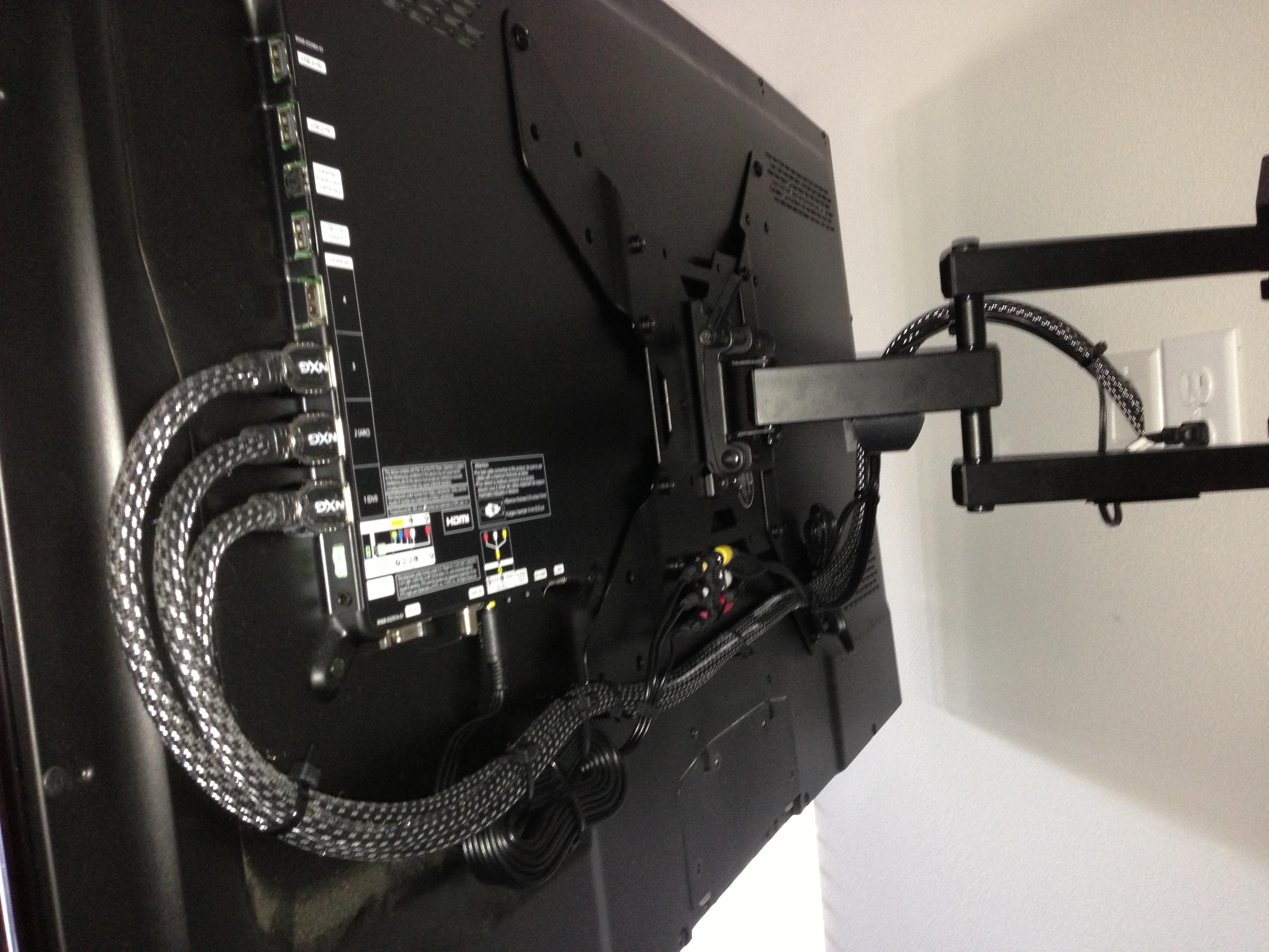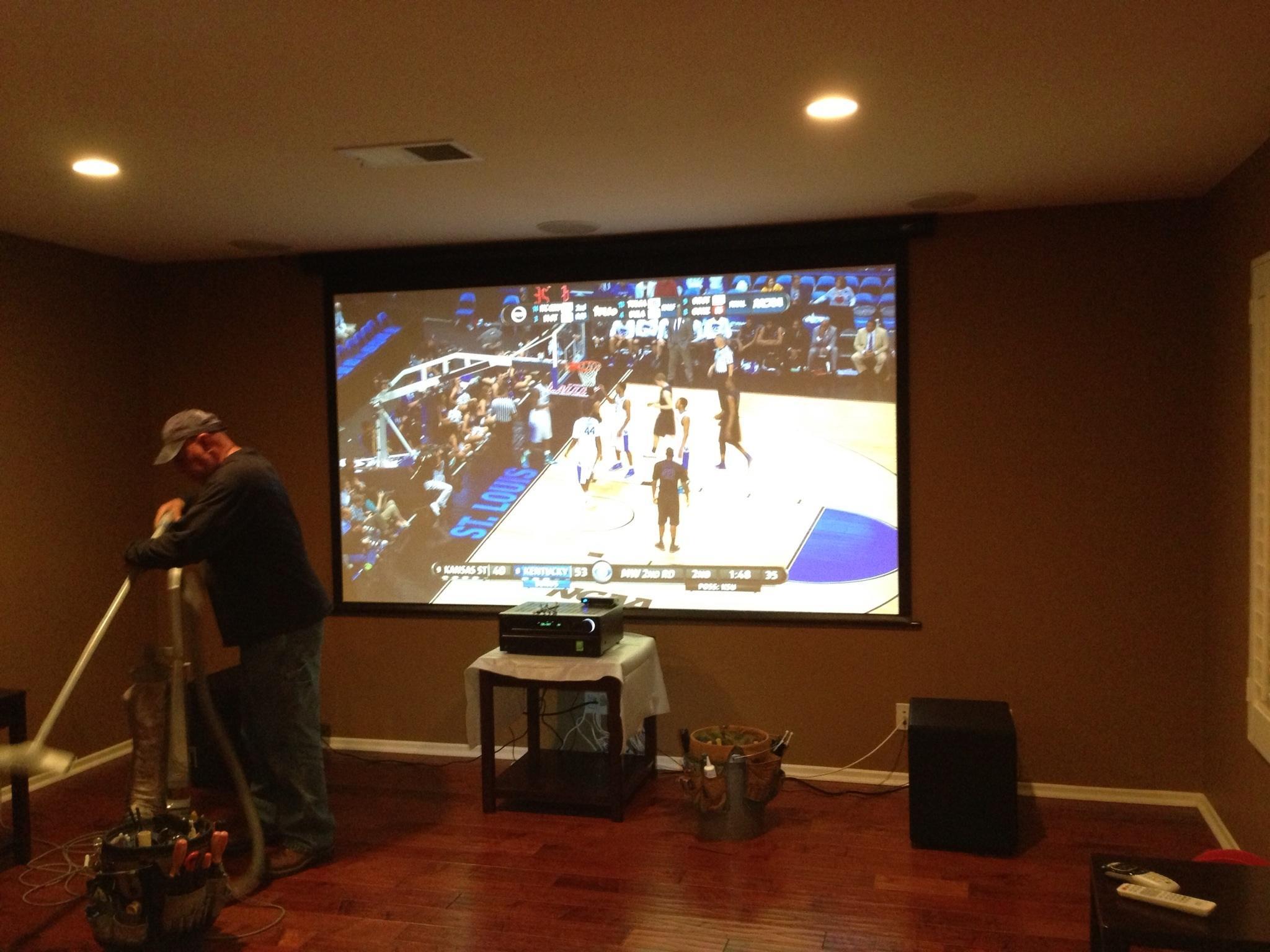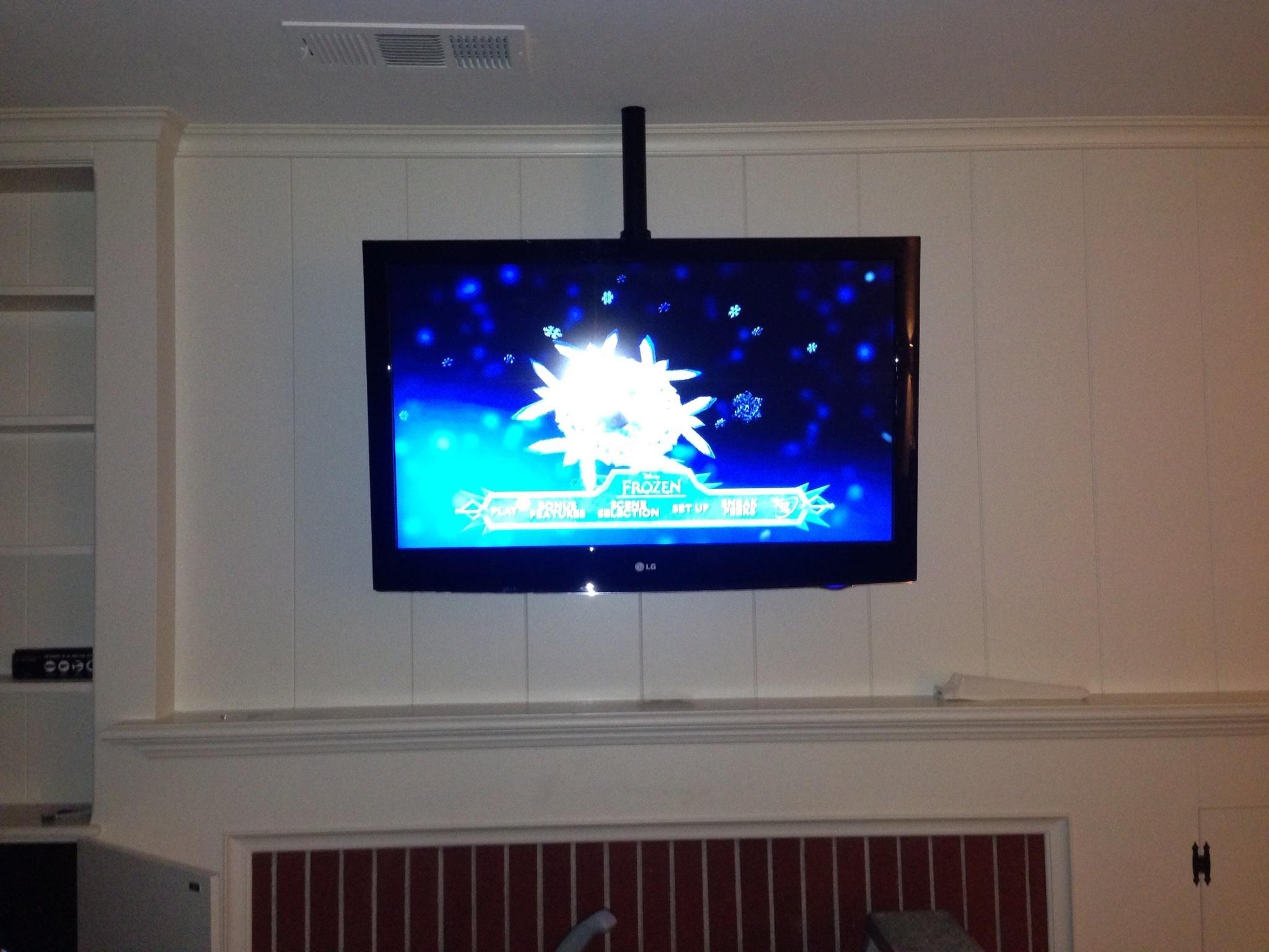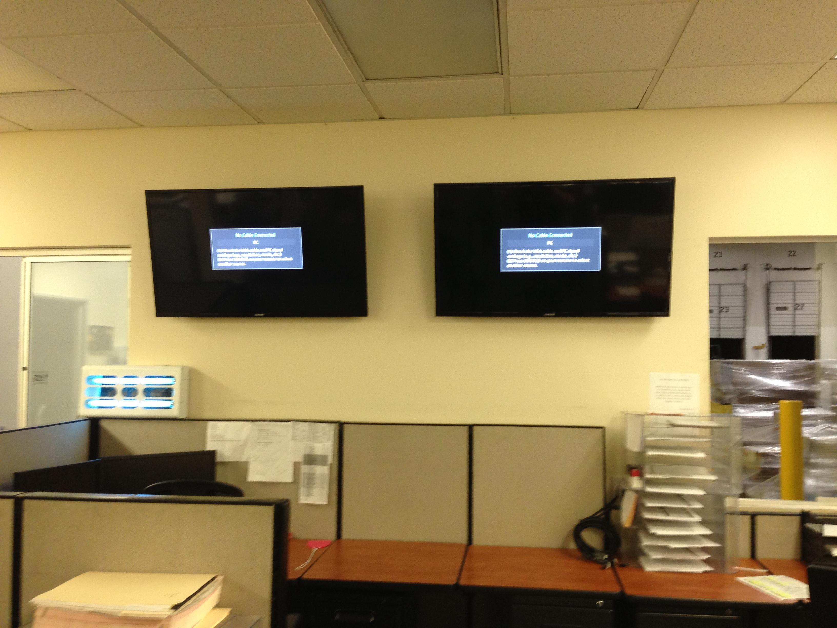• 75 65 80 37 Home theater room in loft.  mount BenQ HD projector, 120 Home theater projector calibration. 120 120 Commercial Salon tv installation. Organization is our way to stay on top of production. Commercial cafeteria 4@46 We wall mounted both 70 Martin Logan wall mounted array. Commercial outdoor IP CCTV. Dave installing center in-ceiling speaker 5.1 system. Sometimes ceiling mounts can be used to provide a modern look, cabling gets concealed in pipe mount. 46 Dave up high running CCTV cabling for (8) camera system outdoor produce company. Big bear cabin speaker system 3@ pairs of speakers in three rooms with 5.1 in main living area, wall mounted 55 This client already had electrician run power to location on surface of wall, we came in and mounted tv, concealed our cabling. Commercial projector conference room. Ceiling mounted HDMI, VGA, audio. 80 Built in wall unit installed 75 Twin 55 60 65 60 Full Russsound audio system outdoor 6 zone 65 Grado spa 40 Client has existing small niche we framed out area mounted full motion mount. This shot is behind install, when tv is pushed back hides hole. 65 Big bear cabin in-wall speakers 70 We sell and install Samsung commercial displays. This was for a local trucking company dispatch displays. 60 55 55 60 60 Dual outdoor patio displays. Installing 7.1 in-ceiling speakers. Full motion mount for this 75 55 60 Commercial CCTV POE system. 35k warehouse cable runs. Whole house speaker system , these were in the tarazzo shower. This small cubby was transformed with framing to support 55 Tv over framed out area client wanted under area for there devices. Client had contractor tell her that this plaster brick fireplace was not possible to install and conceal cabling. 65 Residential 16 channel CCTV set up programming DVR. 60 42 Small Samsung game room tv, client installed tv. We were needed to come in and conceal cabling running down wall. 03/11/15 Again client pre mounted this tv we were called in to conceal cabling running between tv and dresser. 03/11/15 Tv in alcove area 03/13/15 One of three tv installed  with 5.1 in ceiling speakers post wire 03/14/15 Wall mounted floating A/V furniture sold and installed. Available in Expresso and Chocolate.