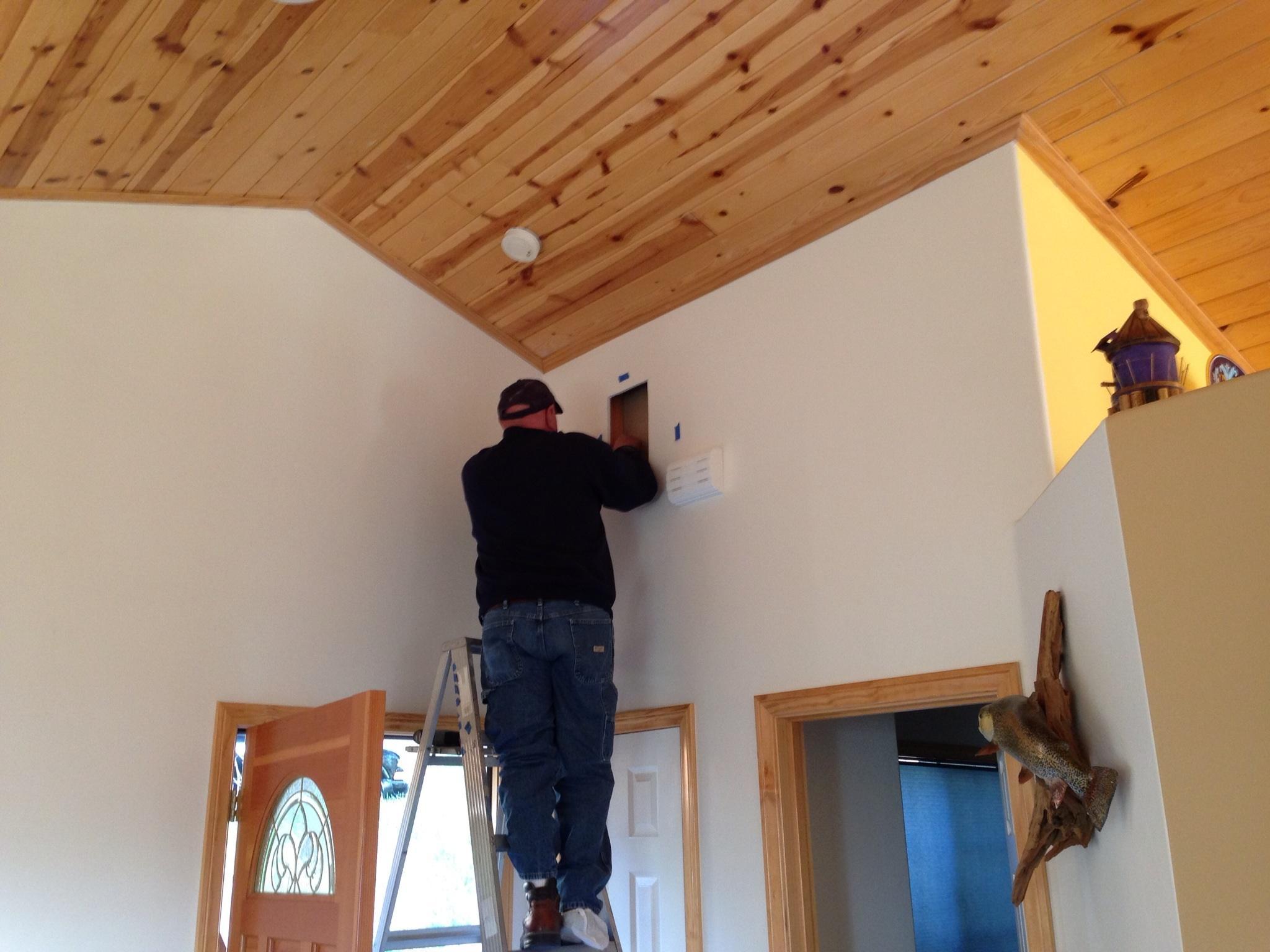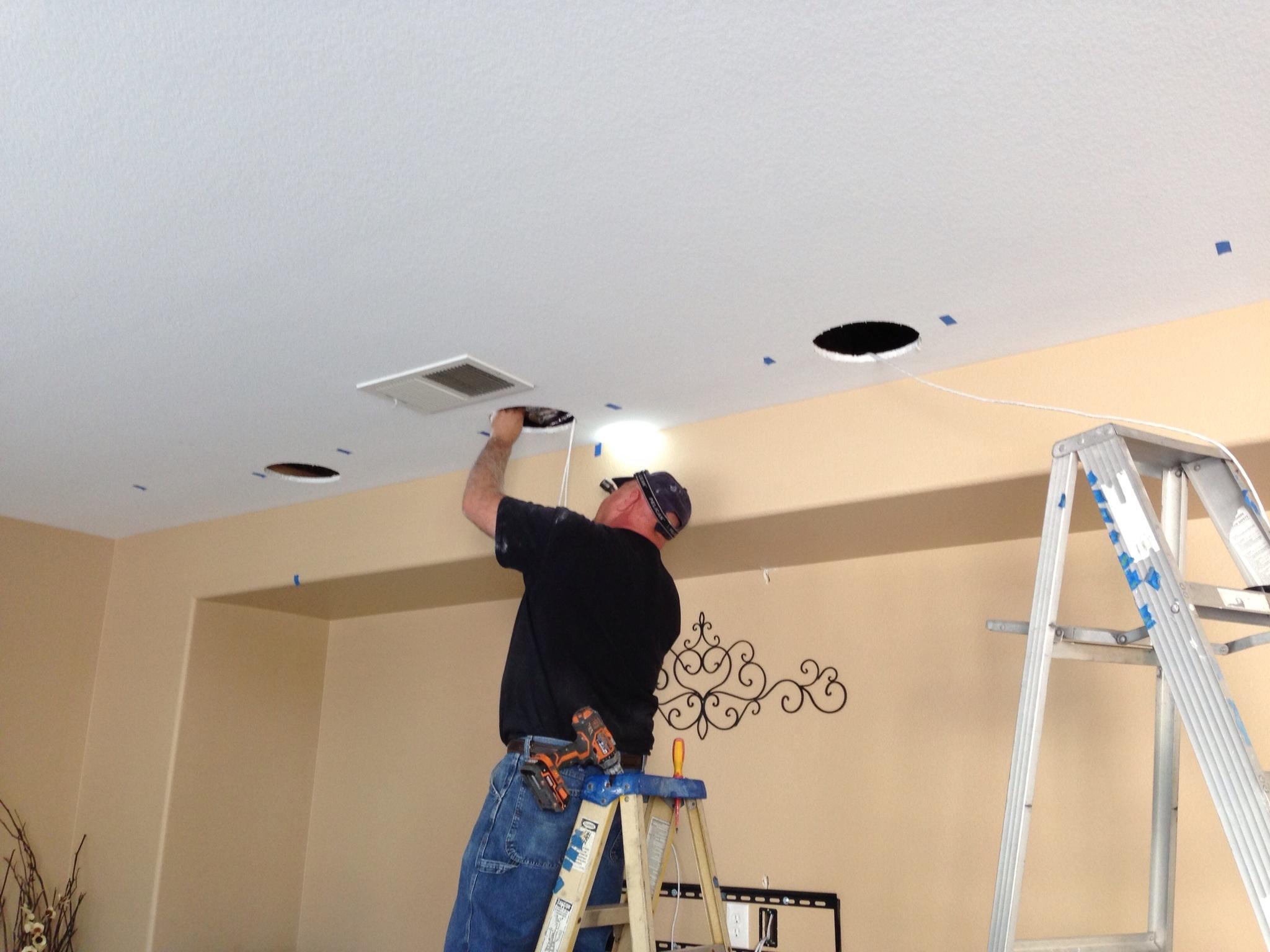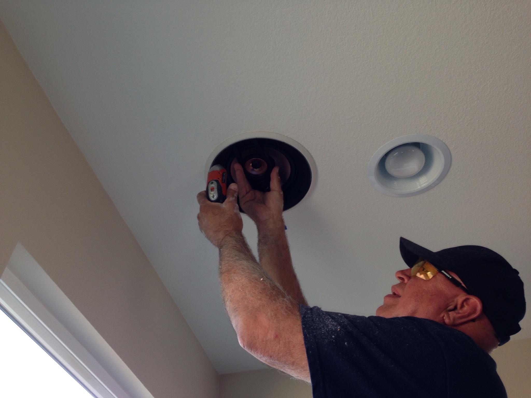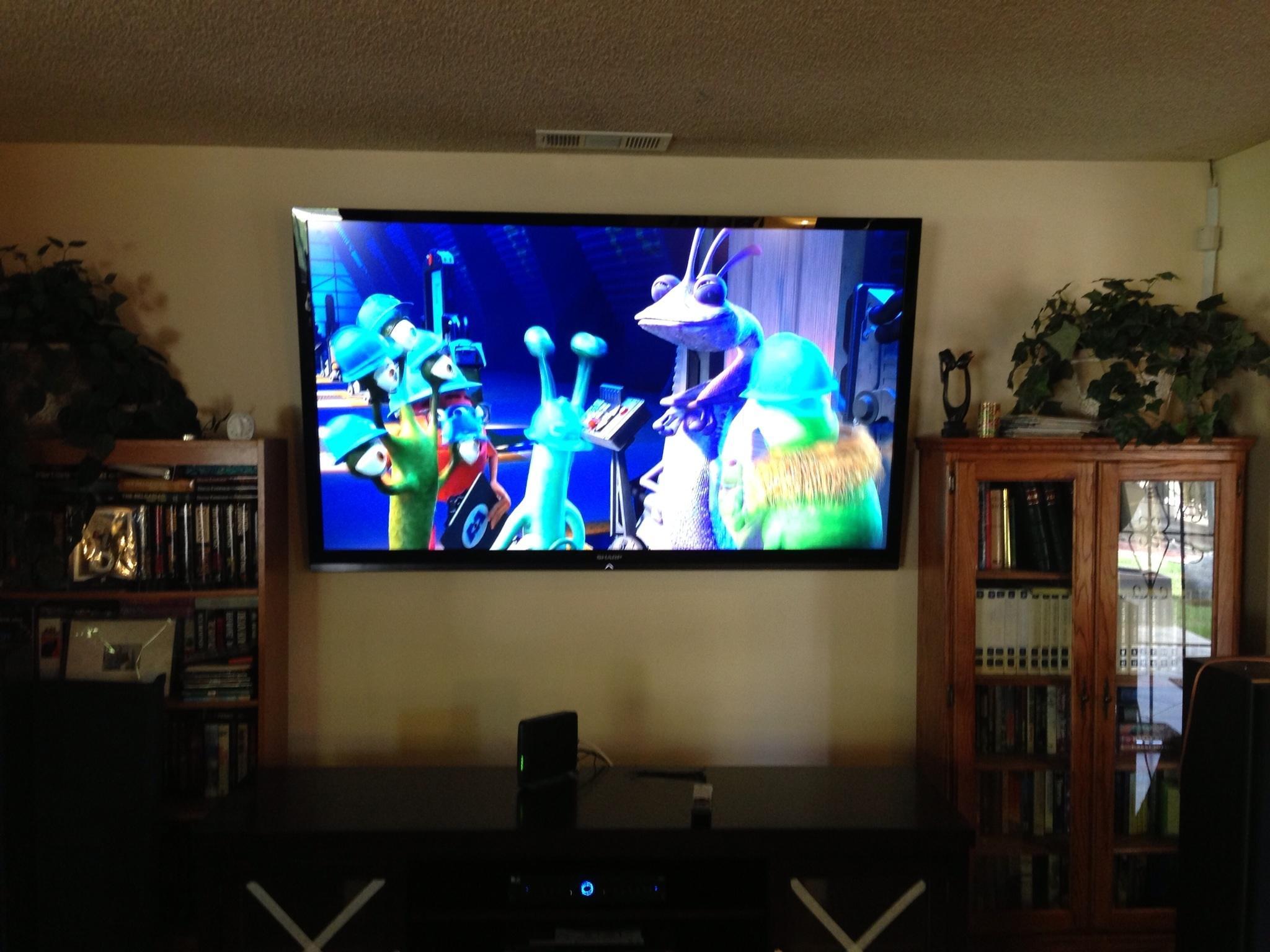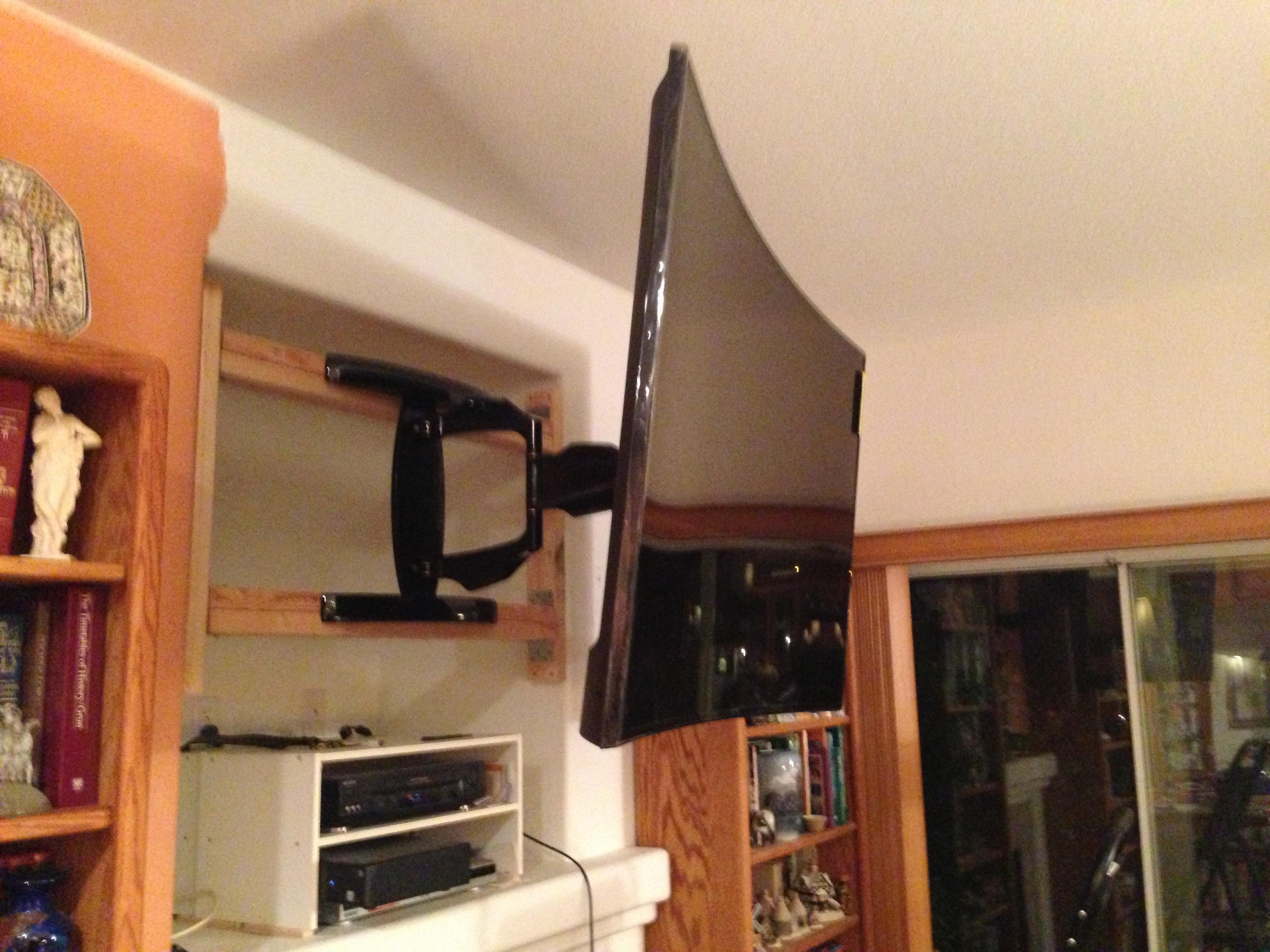 • 75 65 80 37 Home theater room in loft.  mount BenQ HD projector, 120 Home theater projector calibration. 120 120 Commercial Salon tv installation. Organization is our way to stay on top of production. Commercial cafeteria 4@46 We wall mounted both 70 Martin Logan wall mounted array. Commercial outdoor IP CCTV. Dave installing center in-ceiling speaker 5.1 system. Sometimes ceiling mounts can be used to provide a modern look, cabling gets concealed in pipe mount. 46 Dave up high running CCTV cabling for (8) camera system outdoor produce company. Big bear cabin speaker system 3@ pairs of speakers in three rooms with 5.1 in main living area, wall mounted 55 This client already had electrician run power to location on surface of wall, we came in and mounted tv, concealed our cabling. Commercial projector conference room. Ceiling mounted HDMI, VGA, audio. 80 Built in wall unit installed 75 Twin 55 60 65 60 Full Russsound audio system outdoor 6 zone 65 Grado spa 40 Client has existing small niche we framed out area mounted full motion mount. This shot is behind install, when tv is pushed back hides hole. 65 Big bear cabin in-wall speakers 70 We sell and install Samsung commercial displays. This was for a local trucking company dispatch displays. 60 55 55 60 60 Dual outdoor patio displays. Installing 7.1 in-ceiling speakers. Full motion mount for this 75 55 60 Commercial CCTV POE system. 35k warehouse cable runs. Whole house speaker system , these were in the tarazzo shower. This small cubby was transformed with framing to support 55 Tv over framed out area client wanted under area for there devices. Client had contractor tell her that this plaster brick fireplace was not possible to install and conceal cabling. 65 Residential 16 channel CCTV set up programming DVR. 60 42 Small Samsung game room tv, client installed tv. We were needed to come in and conceal cabling running down wall. 03/11/15 Again client pre mounted this tv we were called in to conceal cabling running between tv and dresser. 03/11/15 Tv in alcove area 03/13/15 One of three tv installed  with 5.1 in ceiling speakers post wire 03/14/15 Wall mounted floating A/V furniture sold and installed. Available in Expresso and Chocolate.
