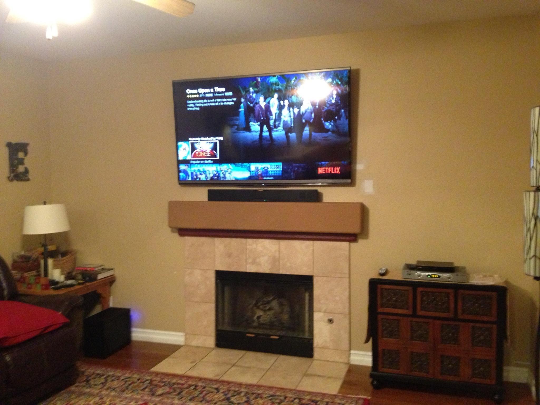 • Fireplace installation with sound bar.