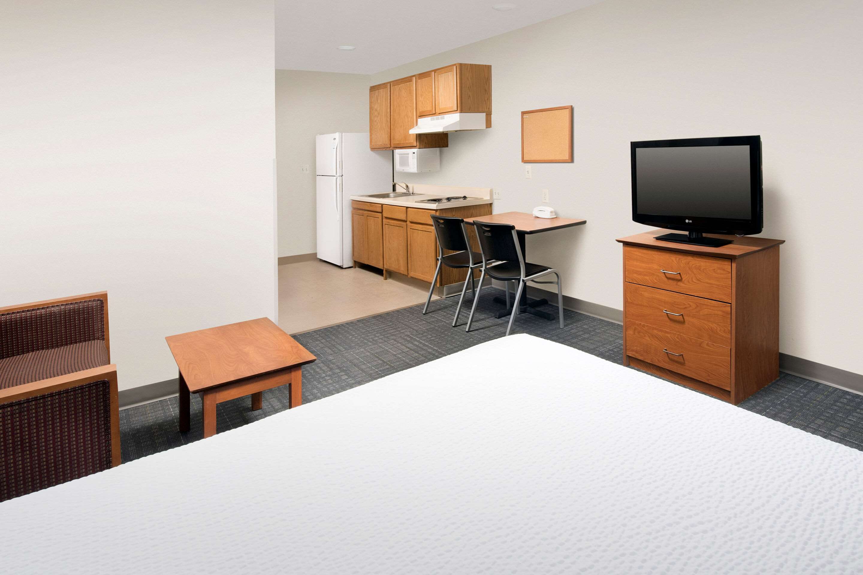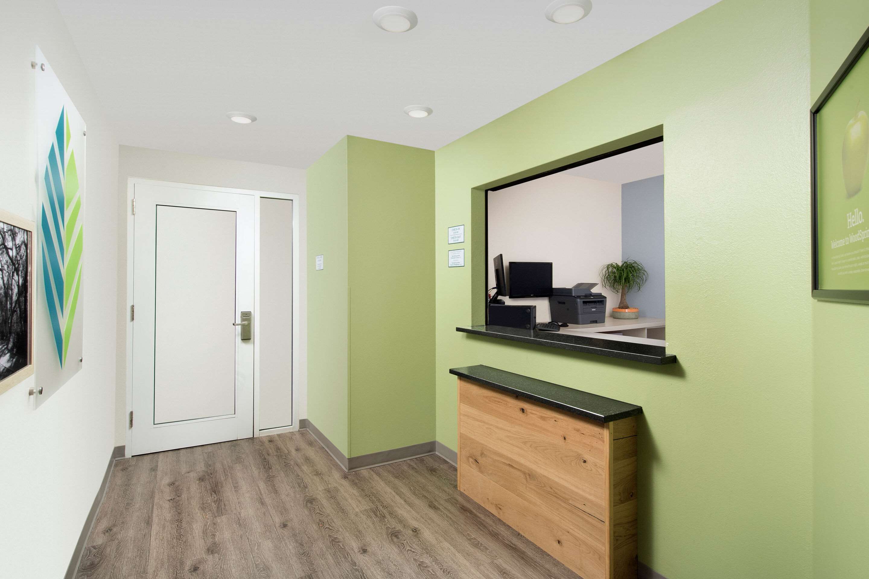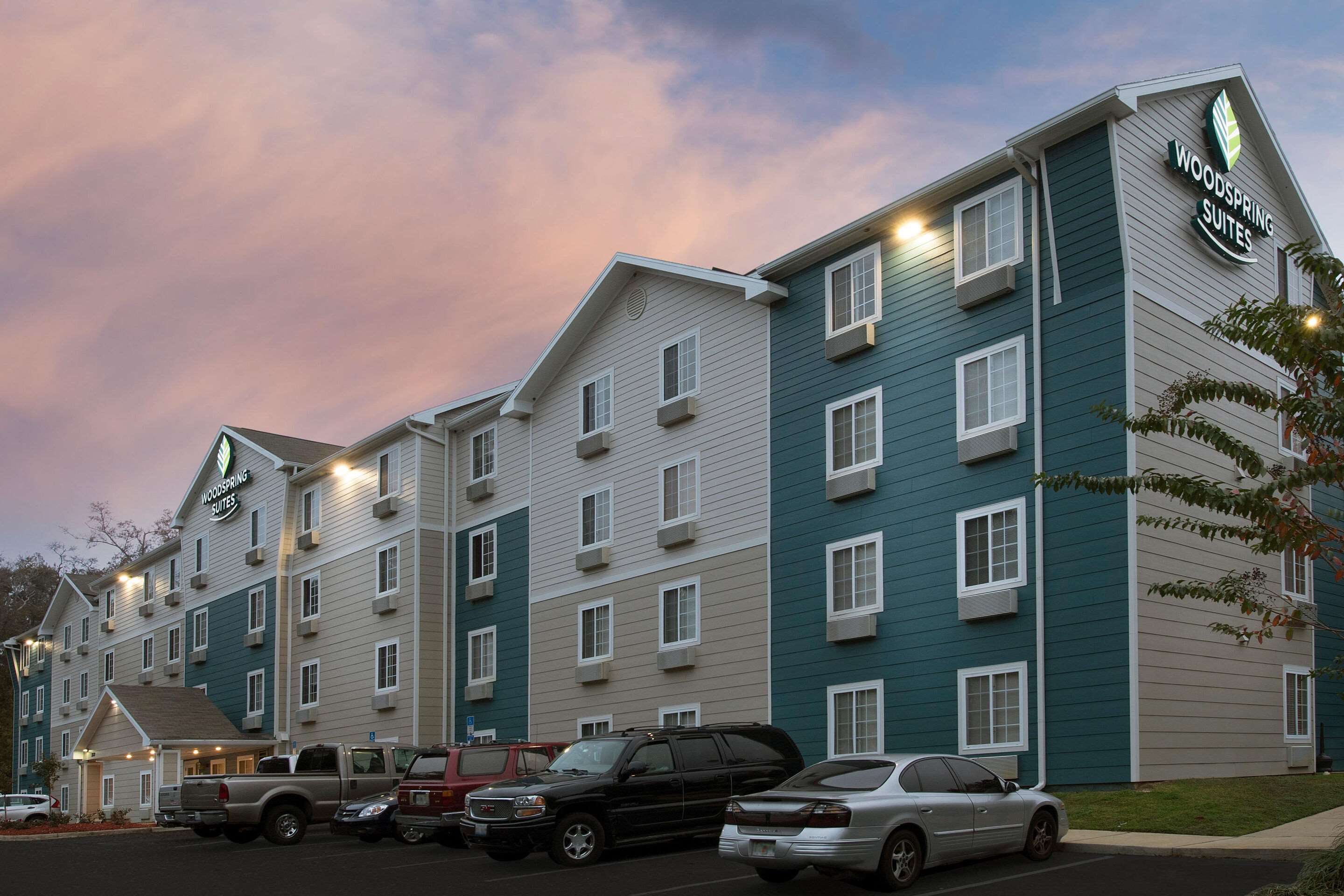 Contacts Robyn Evans WoodSpring Suites is an extended stay hotel offering comfortable, well-priced suites - all with in-room kitchens. Designed for guests staying several nights, a week, or longer - our pet-friendly hotel offers three room layouts, free basic wi-fi, free parking, and 24/7 access to a guest laundry room and vending machines. WoodSpring Suites. It's Simple. Done Better.